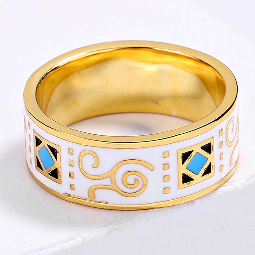 Кольцо в винтажном стиле с золотым покрытием 14K 1 мкр с эмалью