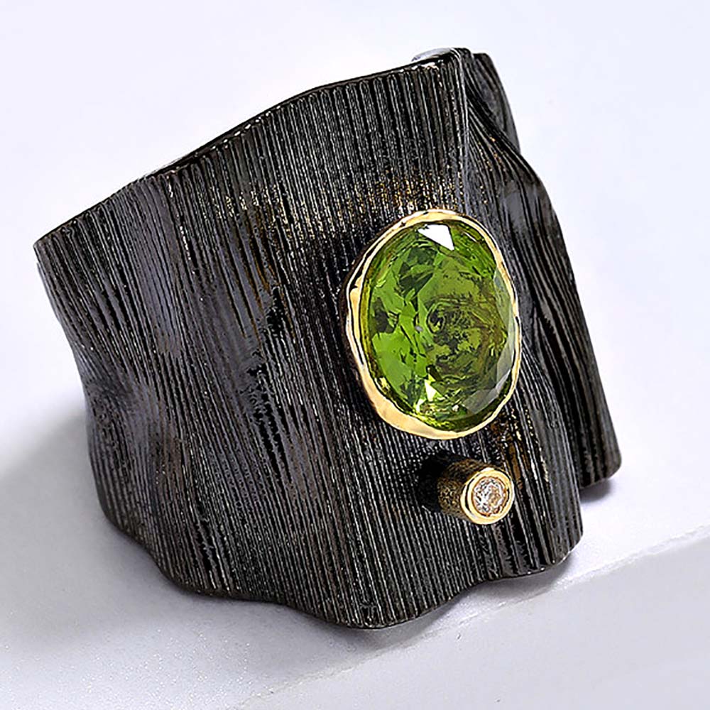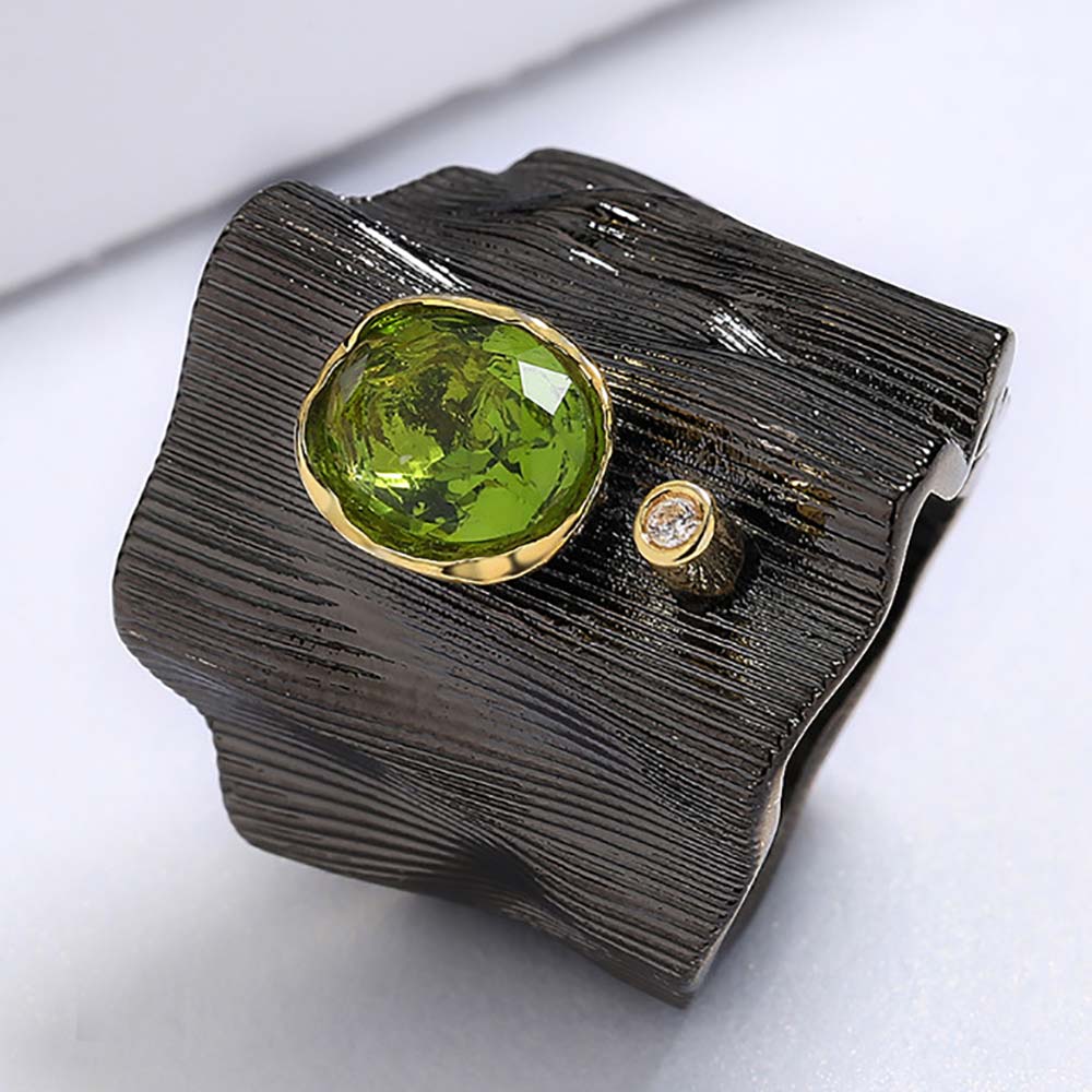 Кольцо в винтажном стиле с золотым покрытием 14K 1 мкр с кристаллом