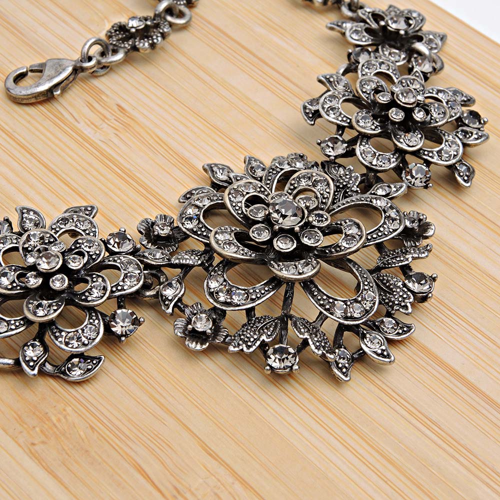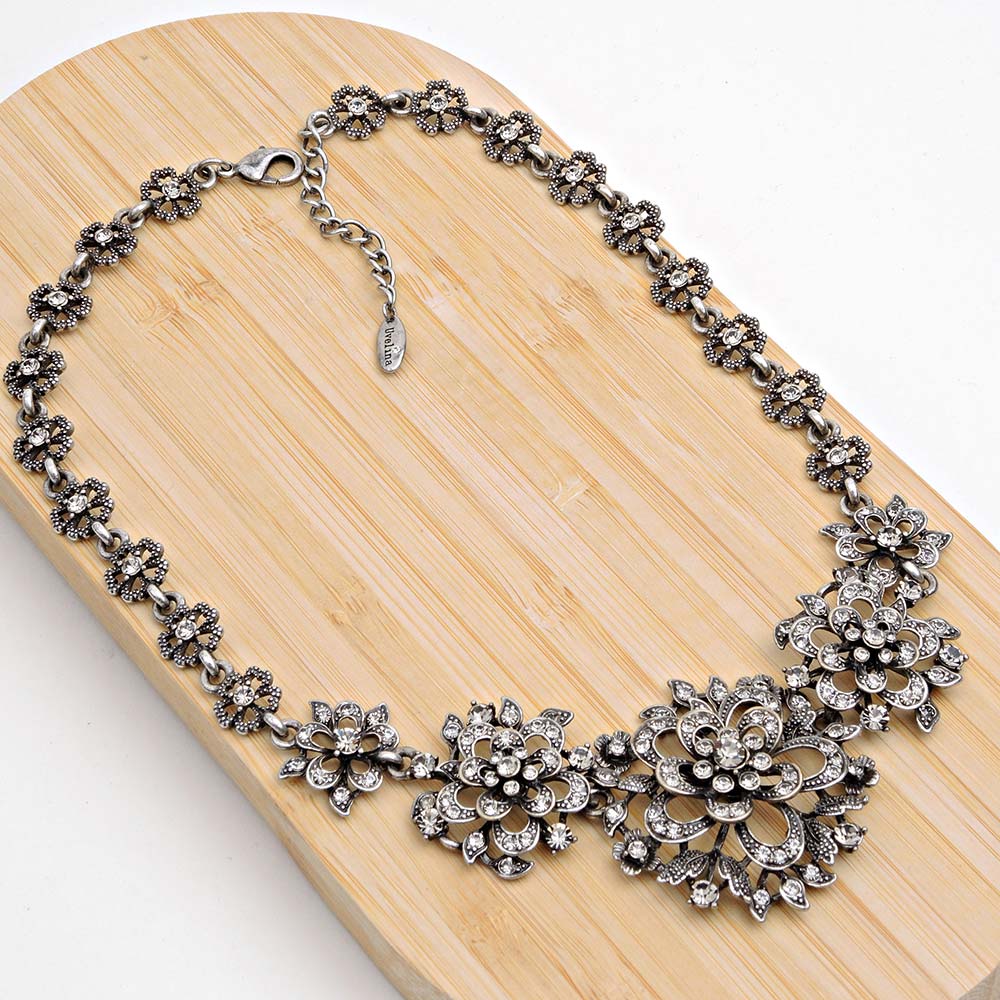 Колье с гальваническим покрытием под чернённое серебро со стразами