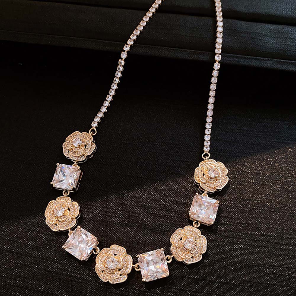 Колье с золотым покрытием 18K 1 мкр с цирконами (фианитами)