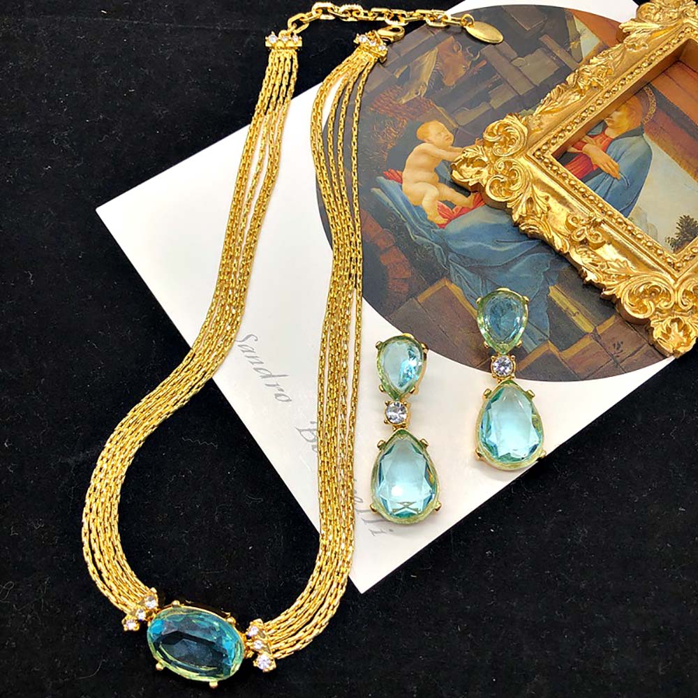 Колье в вечернем стиле с золотым покрытием 14K 1 мкр с хрусталём