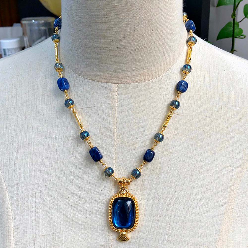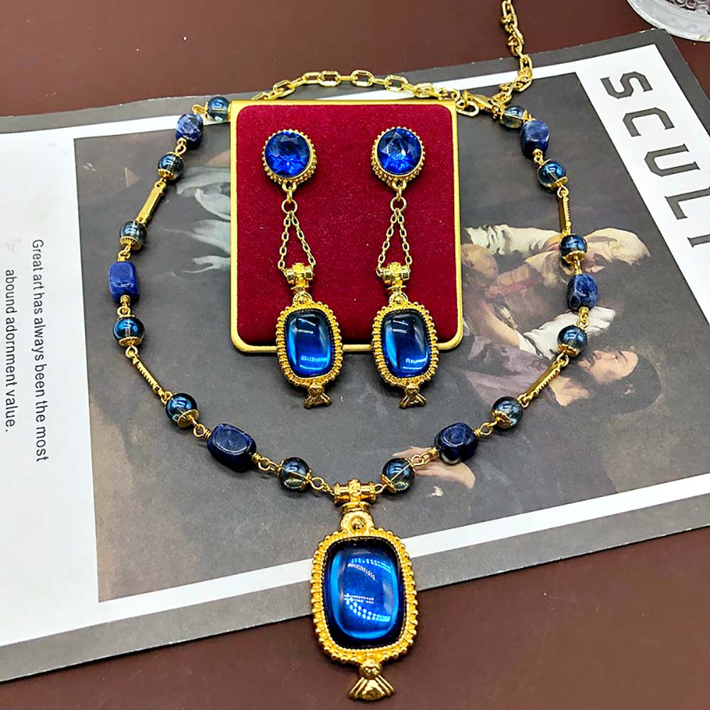 Колье в вечернем стиле с золотым покрытием 14K 1 мкр со стеклянными вставками