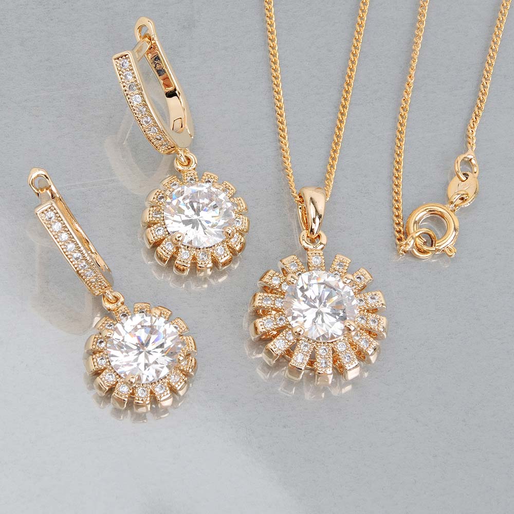 Комплект с золотым покрытием 18K 1 мкр с цирконами (фианитами)