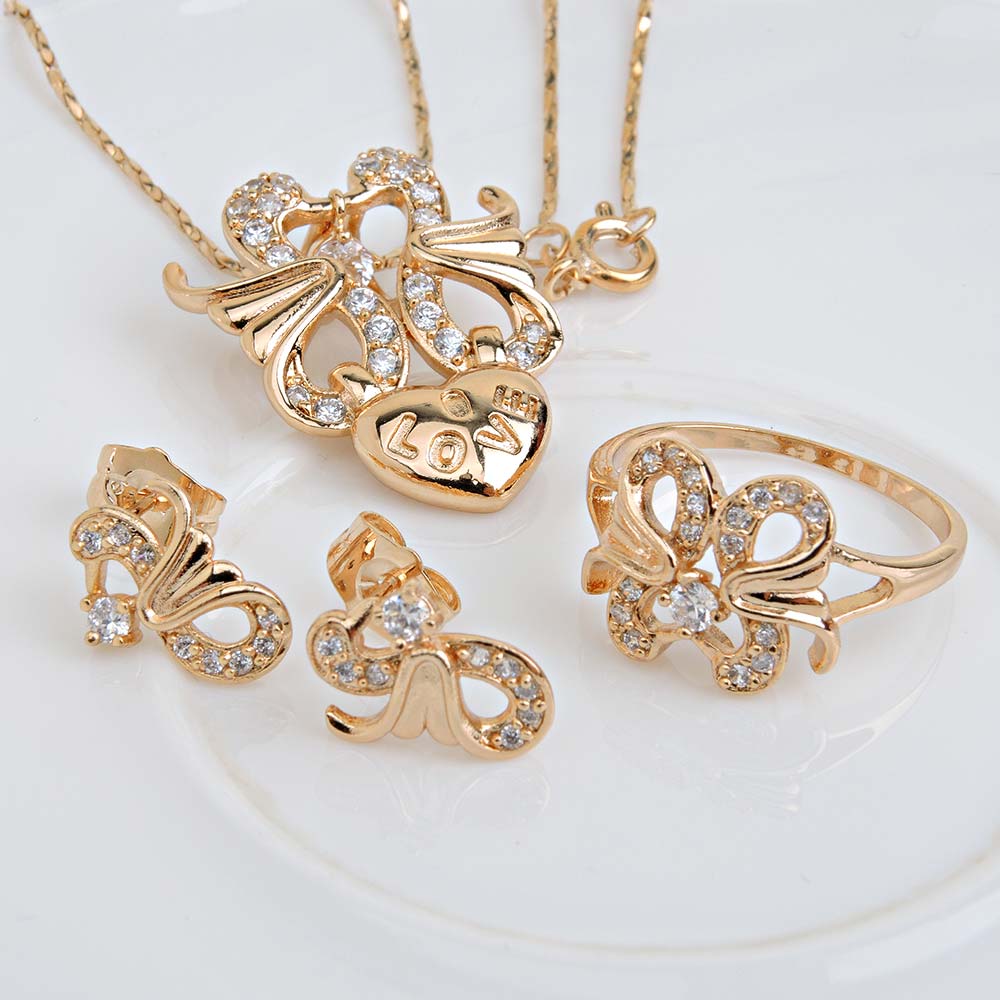 Комплект с золотым покрытием 18K 1 мкр с цирконами (фианитами)