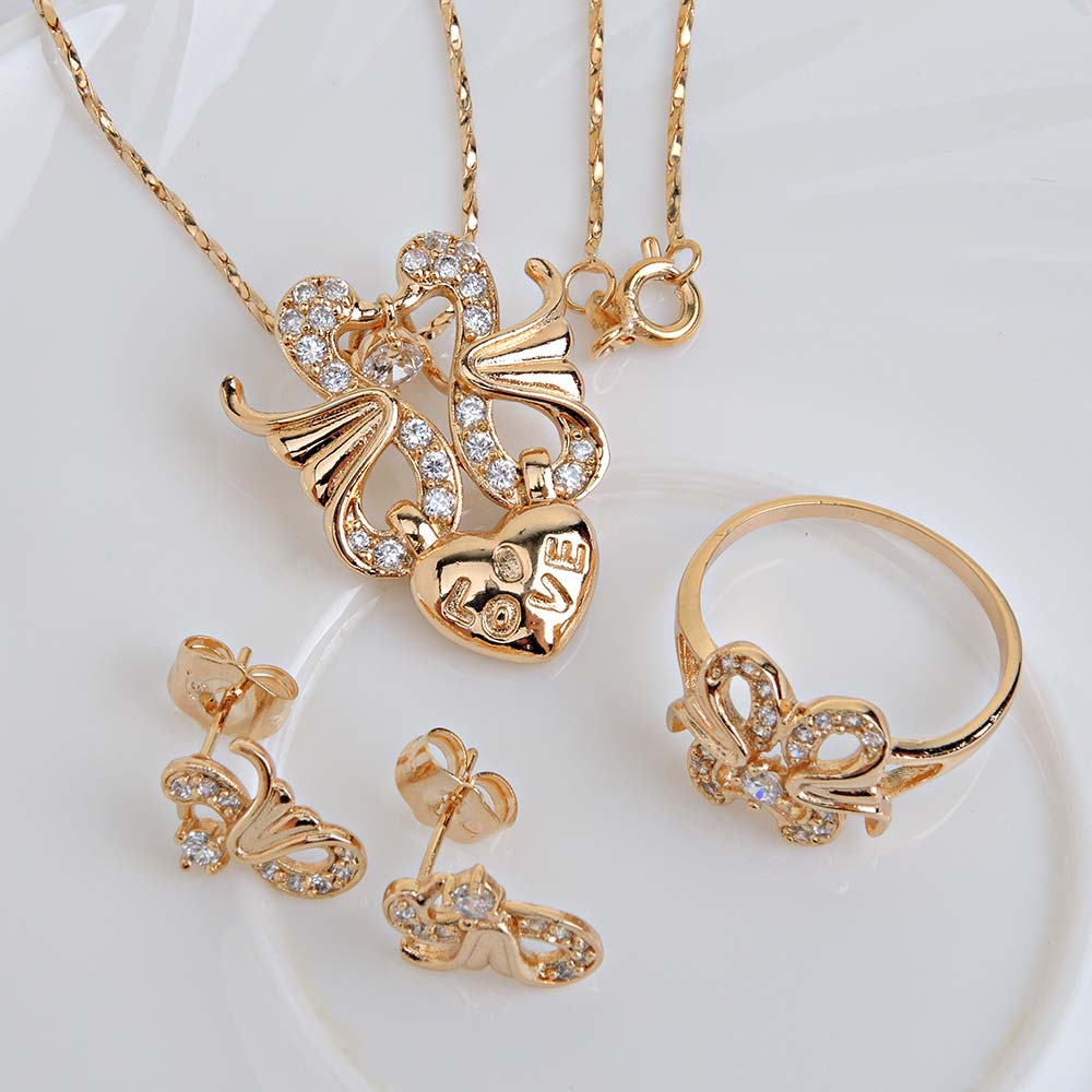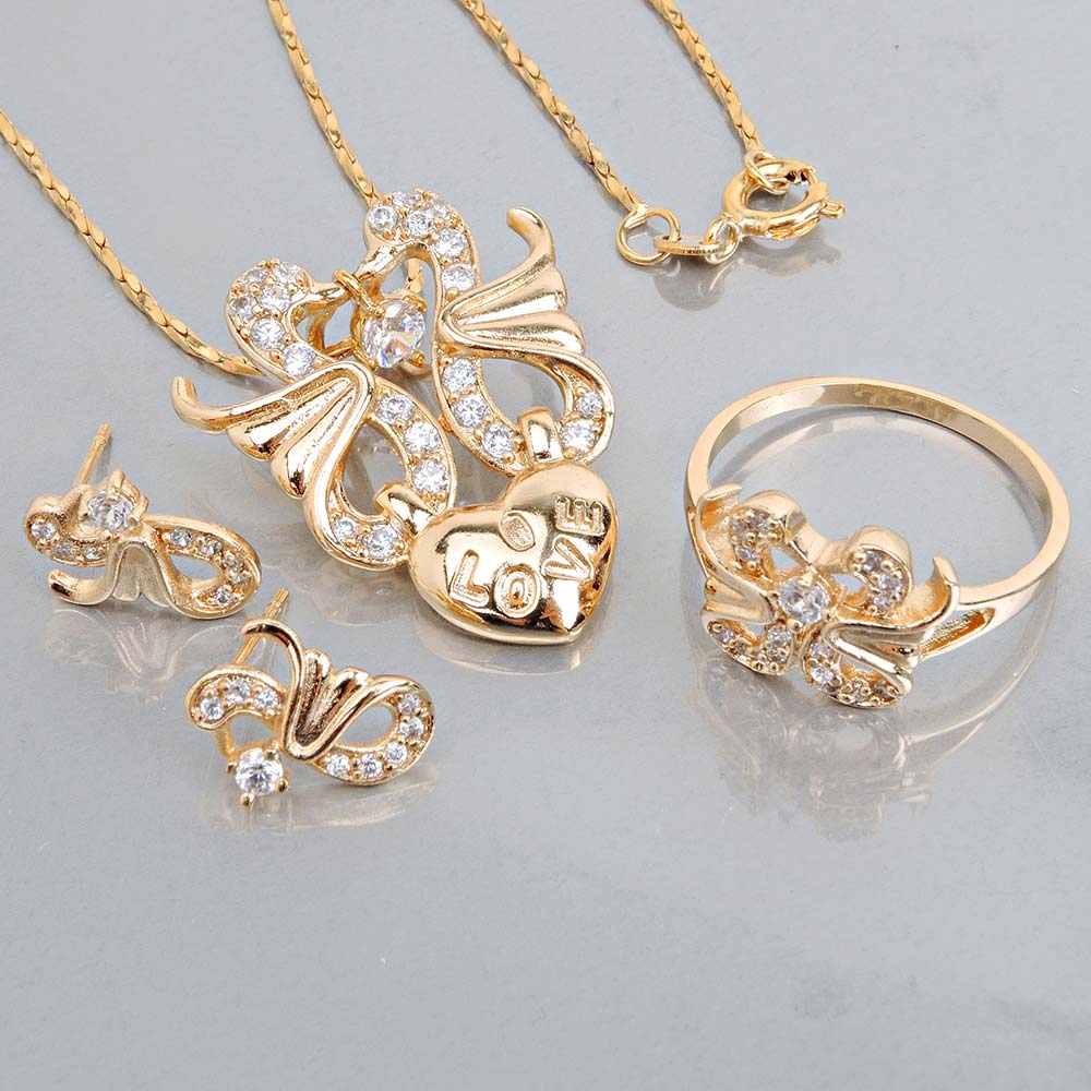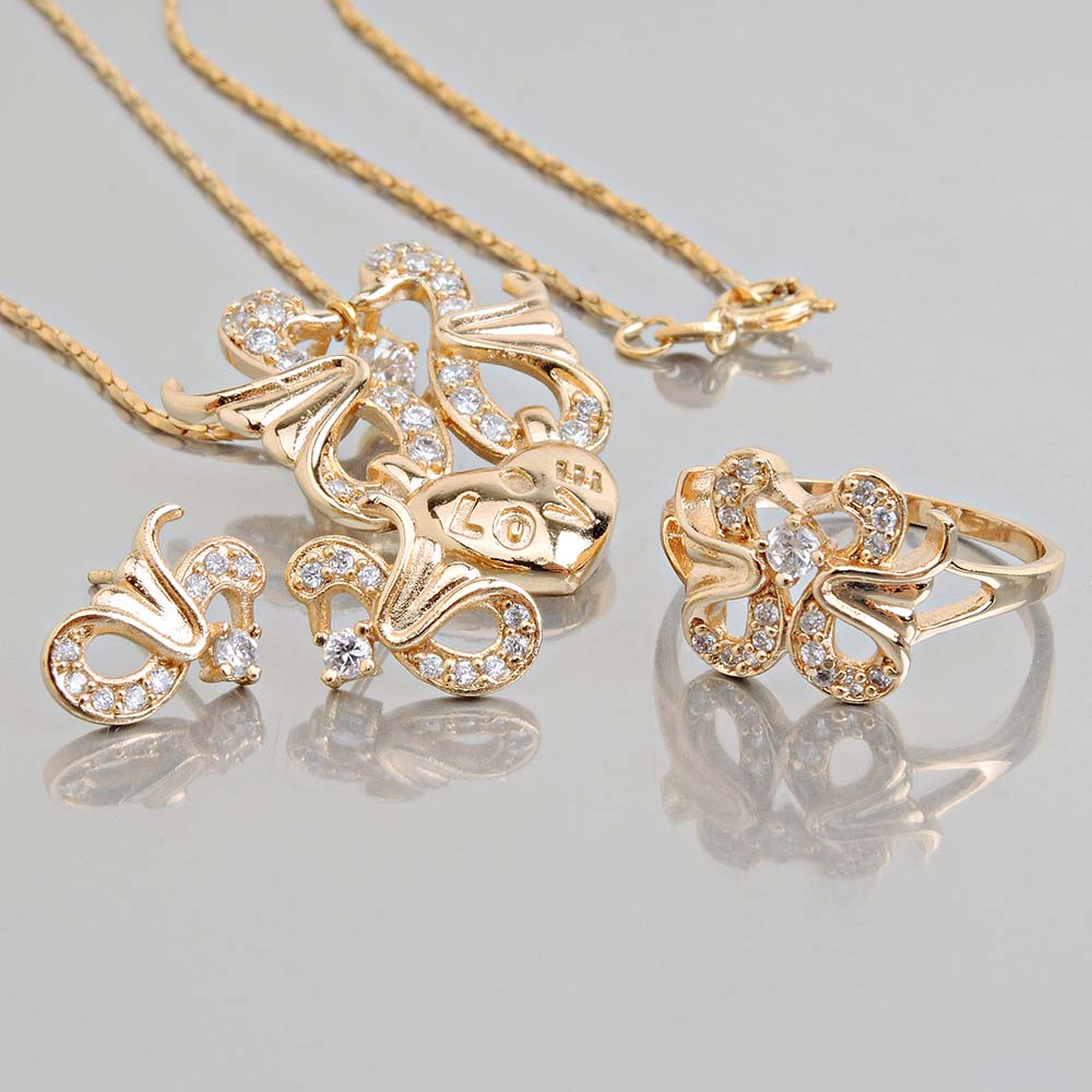Комплект с золотым покрытием 18K 1 мкр с цирконами (фианитами)