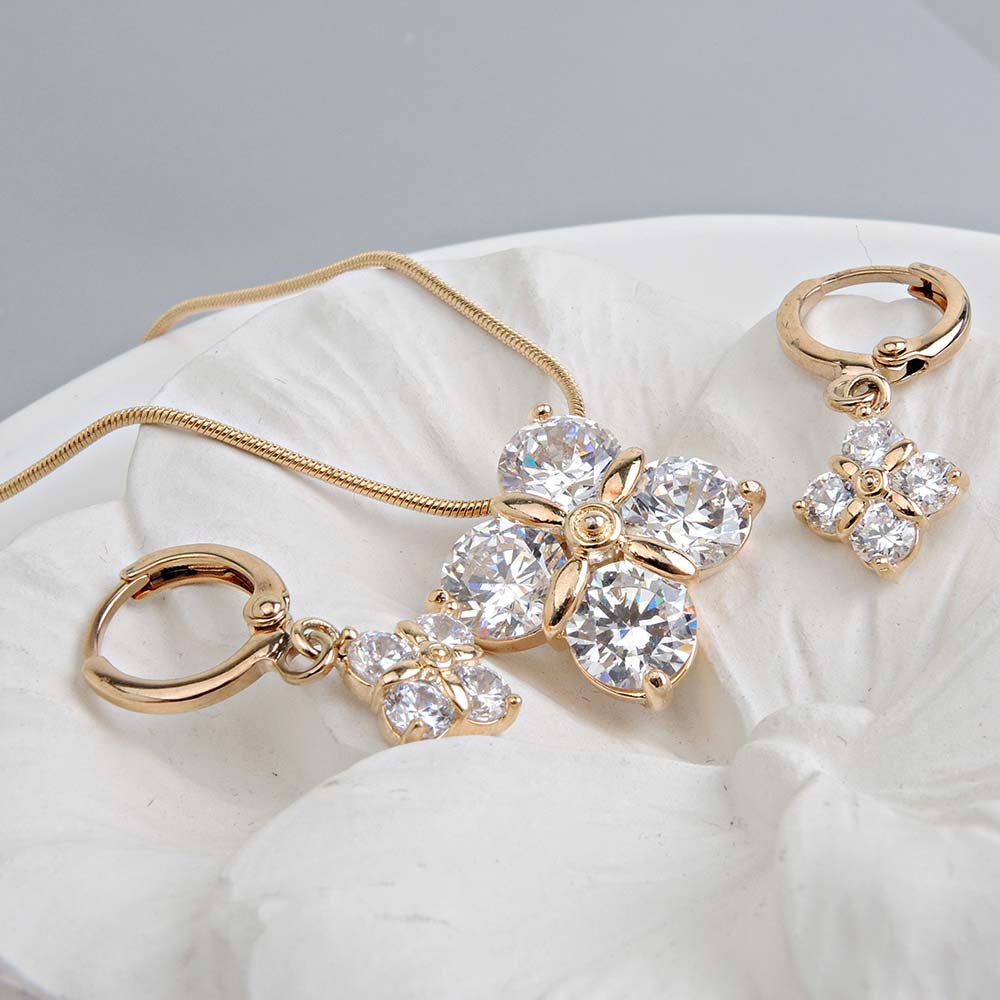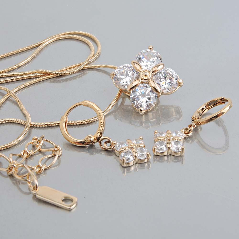 Комплект с золотым покрытием 18K 1 мкр с цирконами (фианитами)