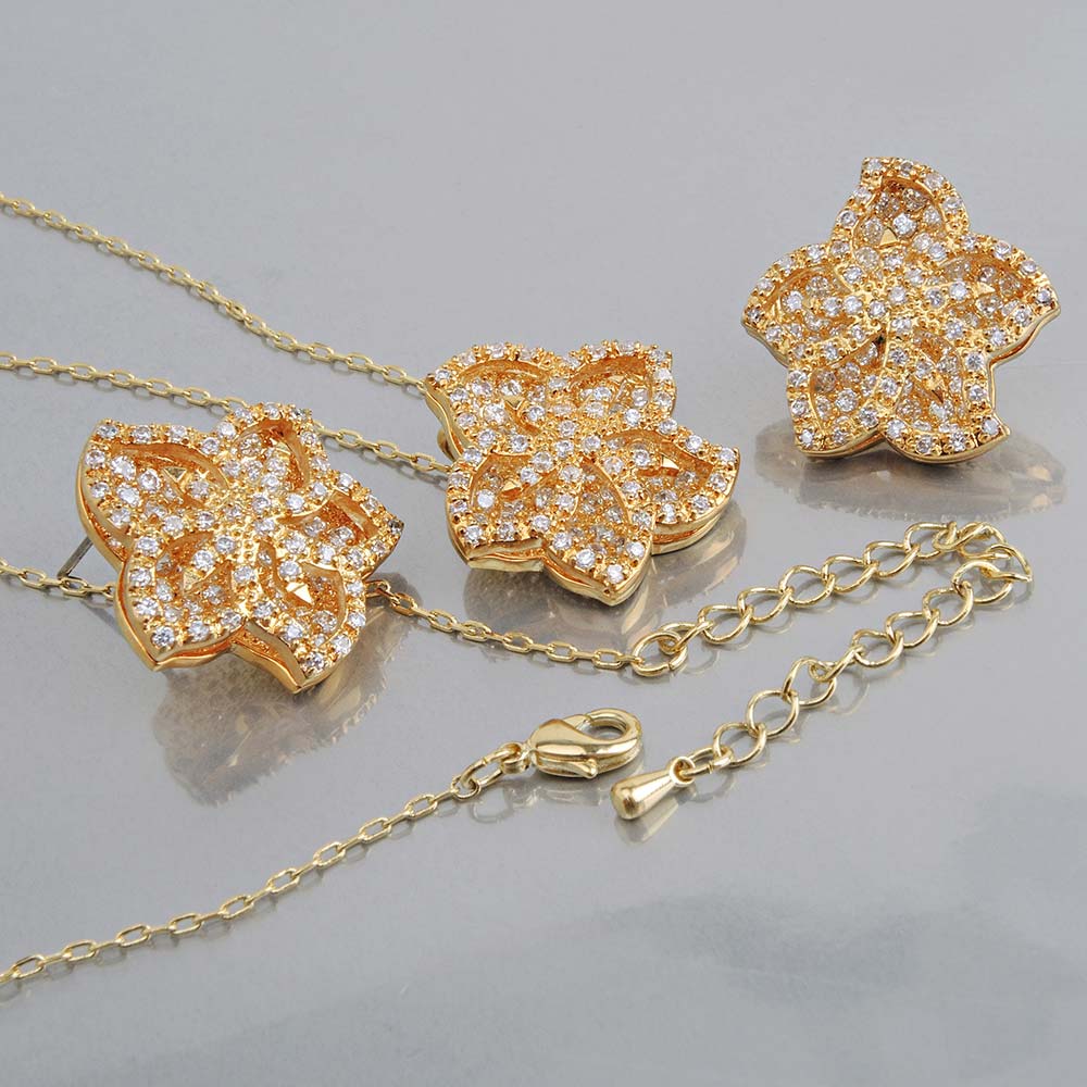 Комплект с золотым покрытием 18K 1 мкр с цирконами (фианитами)