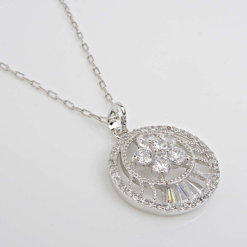 Кулон свадебный белый с родиевым покрытием с цирконами (фианитами)