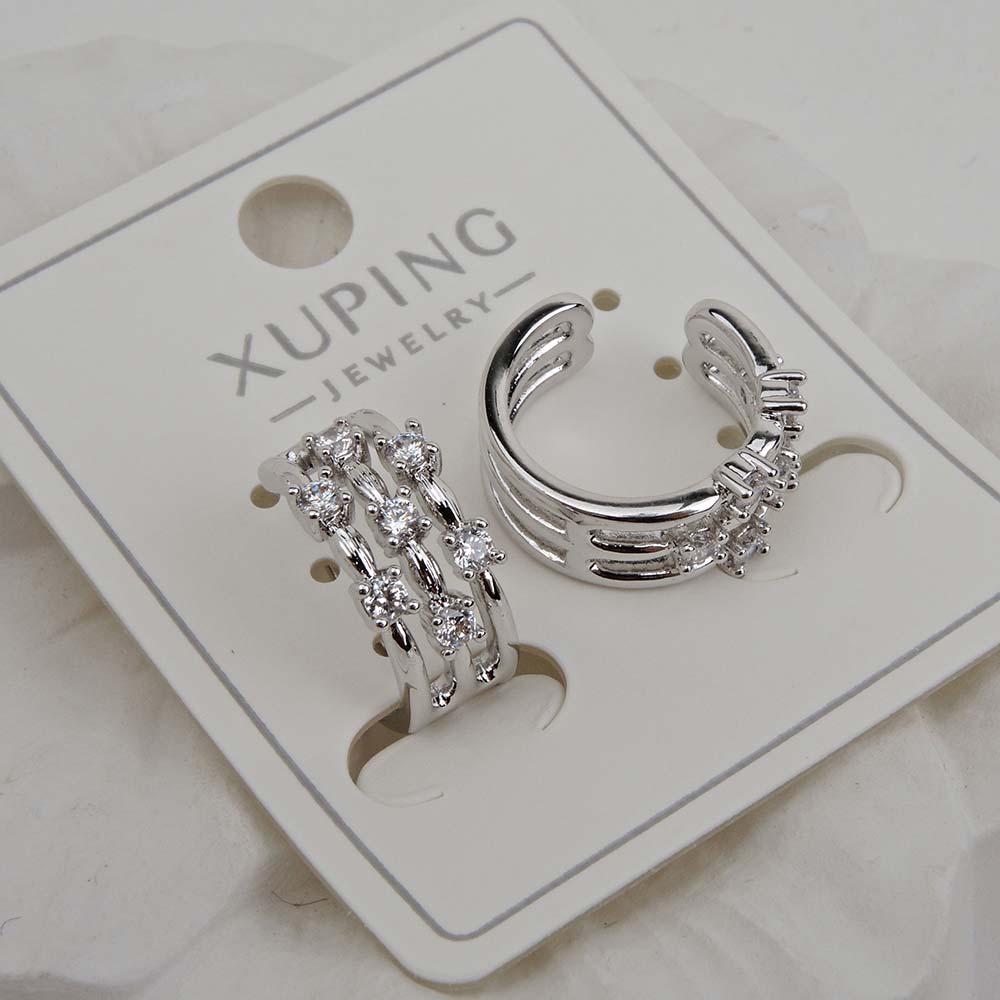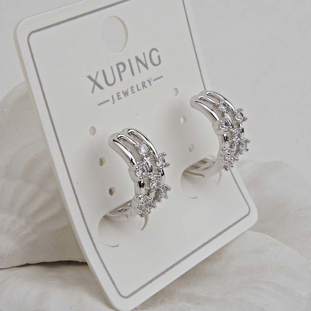 Серьги-каффы с родиевым покрытием с цирконами (фианитами)
