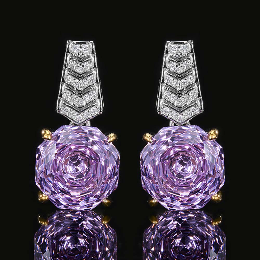 Серьги на гвоздиках с родиевым покрытием с цирконами (фианитами)