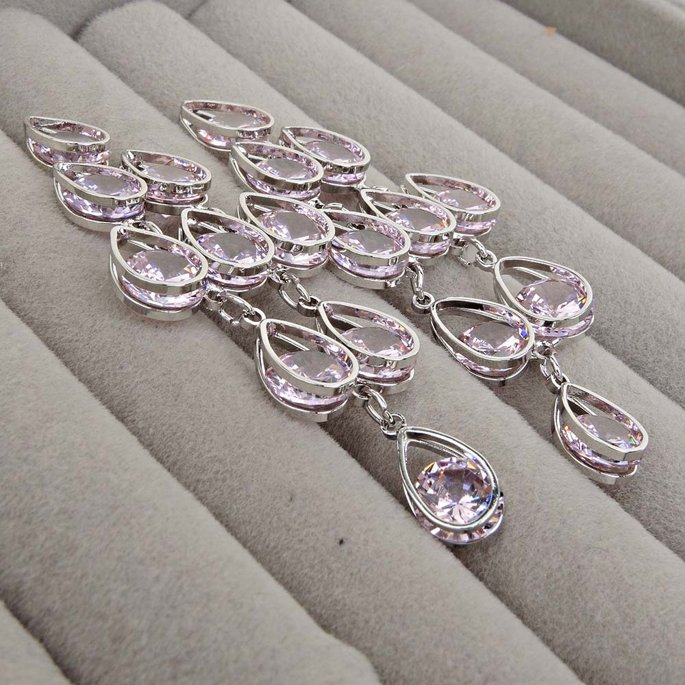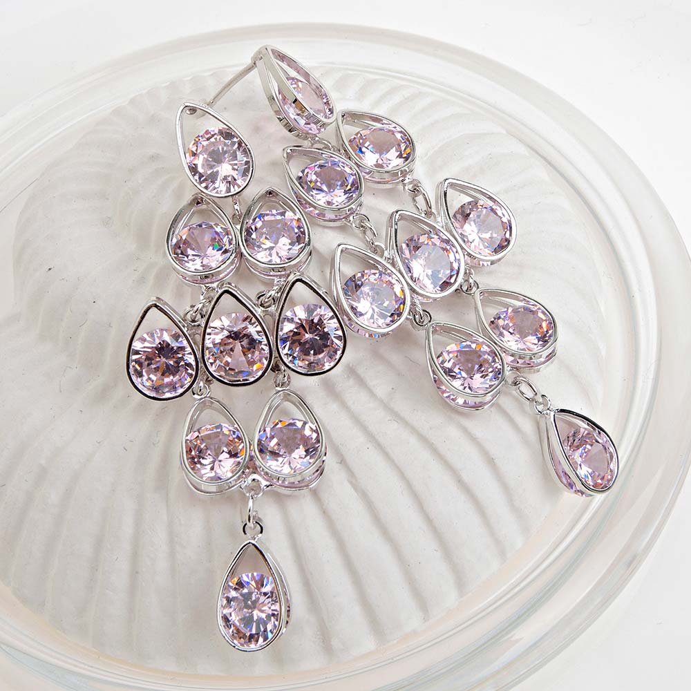 Серьги на гвоздиках с родиевым покрытием с цирконами (фианитами)