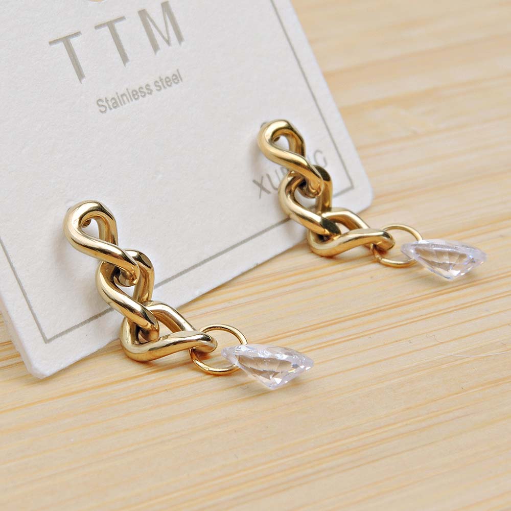 Серьги на гвоздиках с золотым покрытием 18K 1 мкр с цирконами (фианитами)