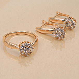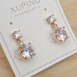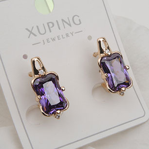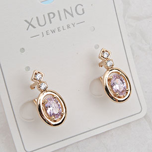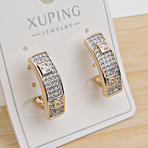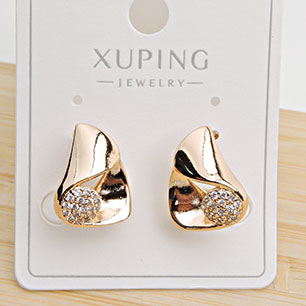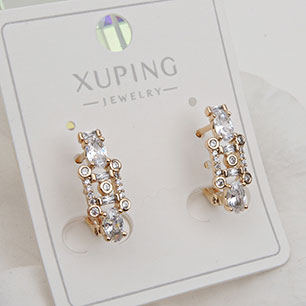 Серьги на гвоздиках с золотым покрытием 18K 1 мкр с цирконами (фианитами)