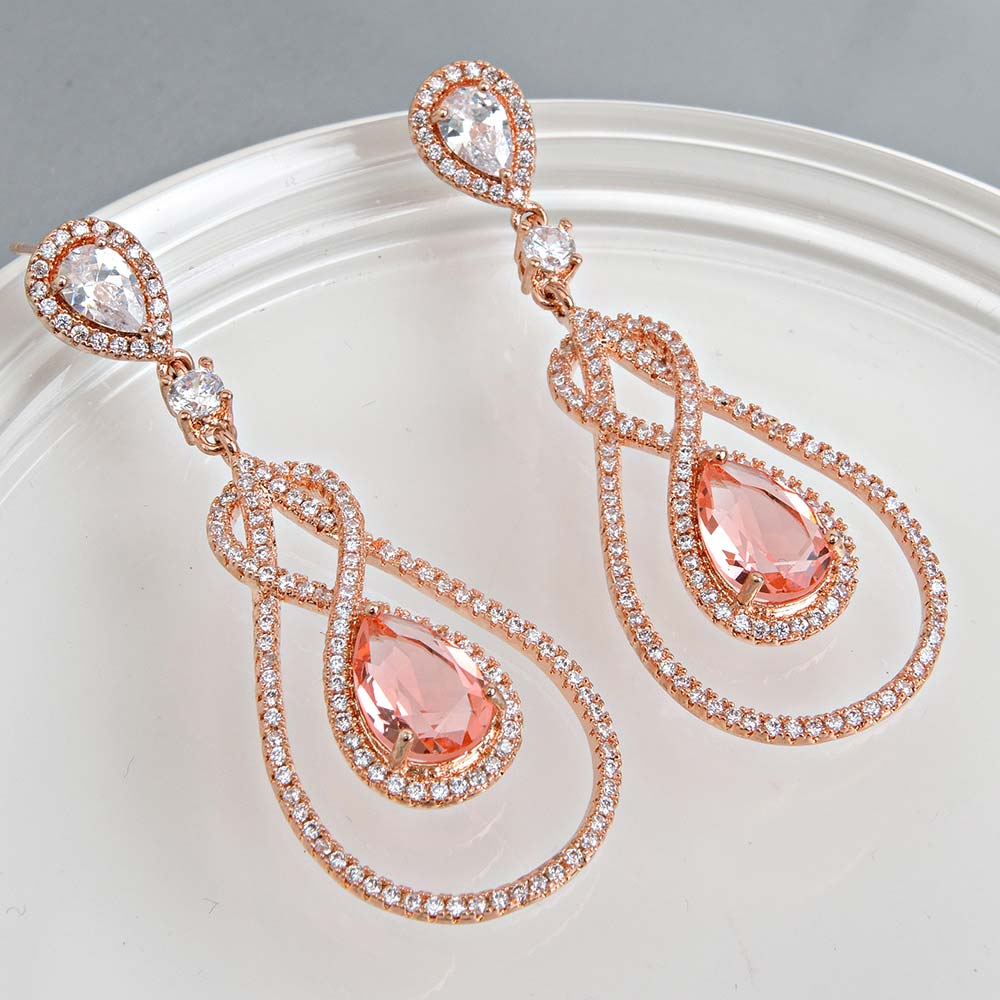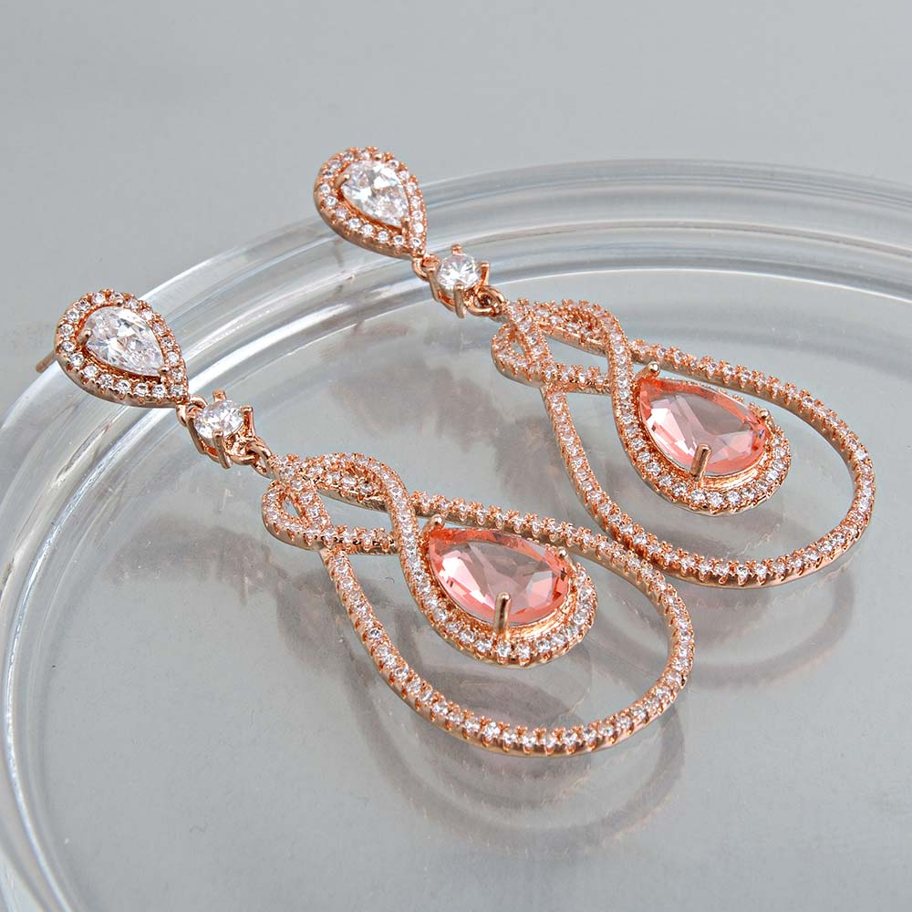 Серьги на гвоздиках с золотым покрытием 18K 1 мкр с цирконами (фианитами)