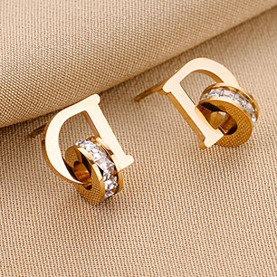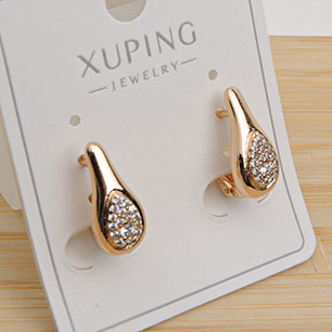 Серьги на гвоздиках с золотым покрытием 18K 1 мкр со стразами