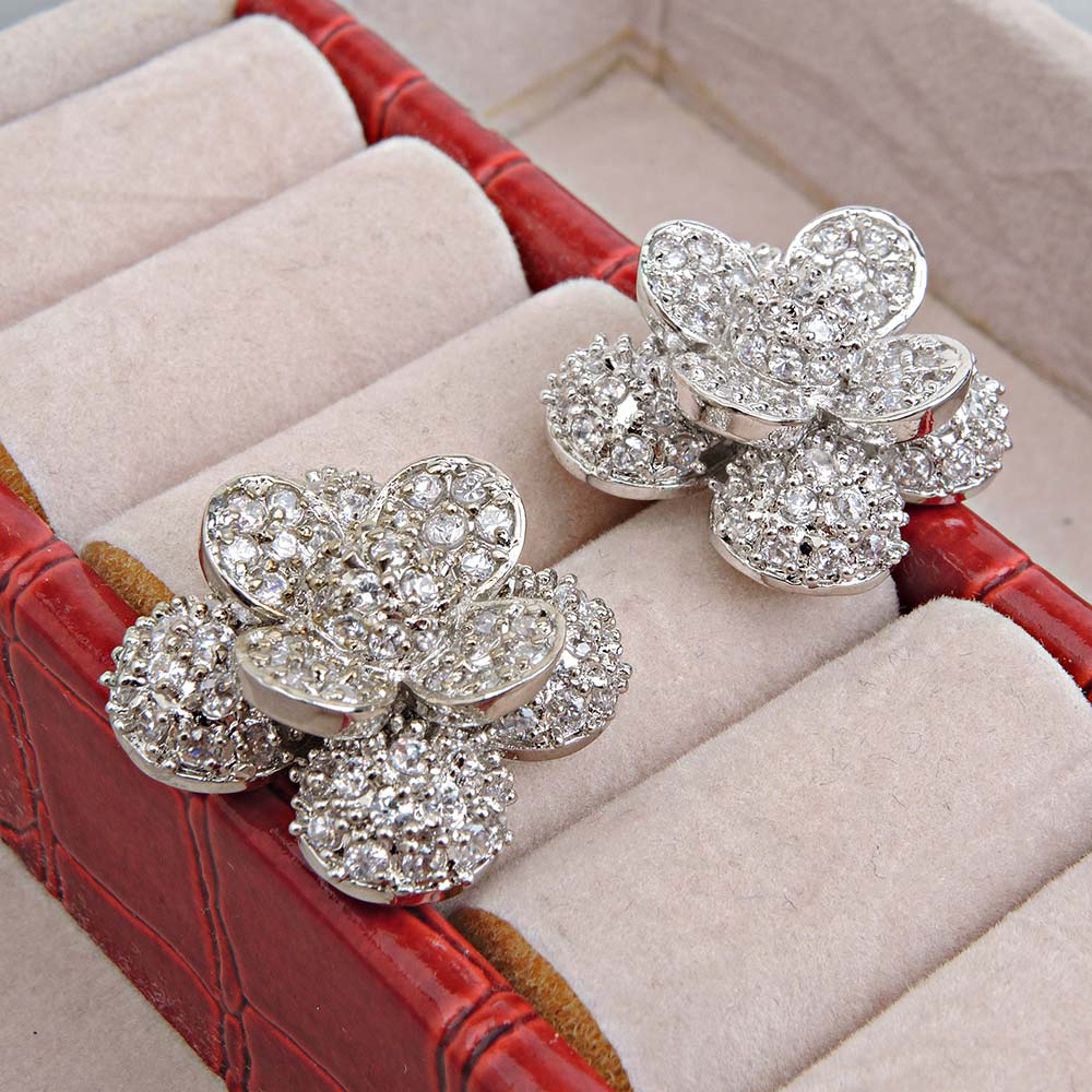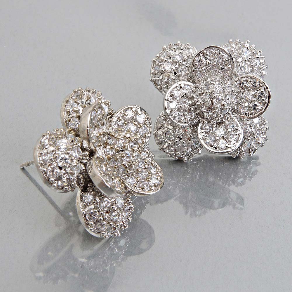 Серьги на гвоздиках свадебные белые с родиевым покрытием с цирконами (фианитами)