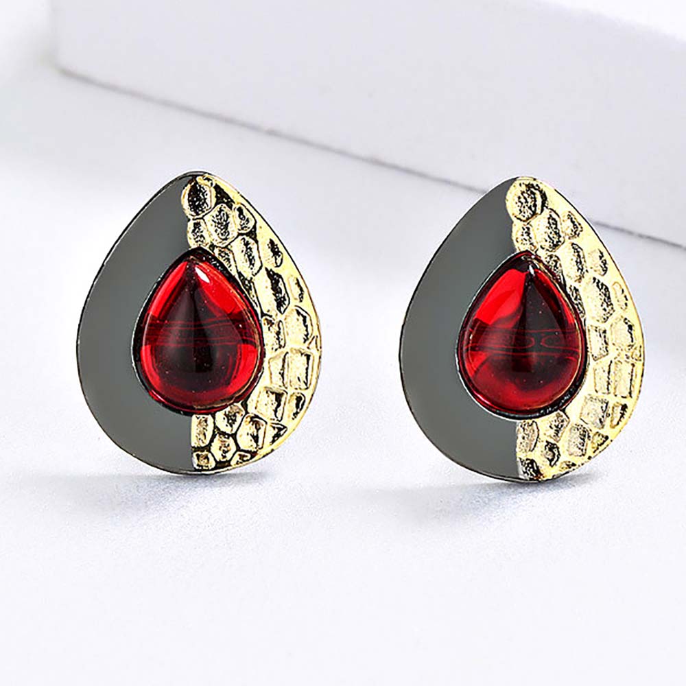 Серьги на гвоздиках в винтажном стиле с родиевым покрытием со стеклянными вставками