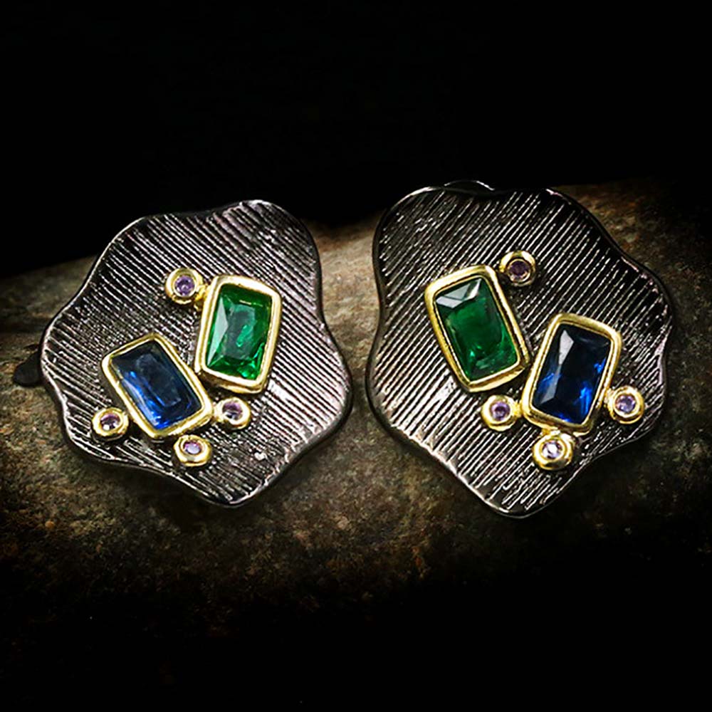 Серьги на гвоздиках в винтажном стиле с золотым покрытием 14K 1 мкр с цирконами (фианитами)