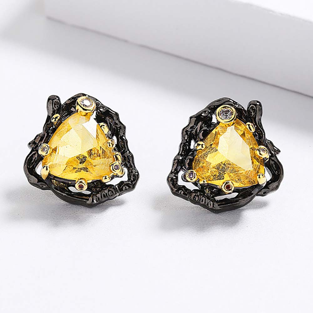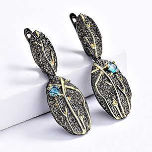 Серьги на гвоздиках в винтажном стиле с золотым покрытием 14K 1 мкр с цирконами (фианитами)