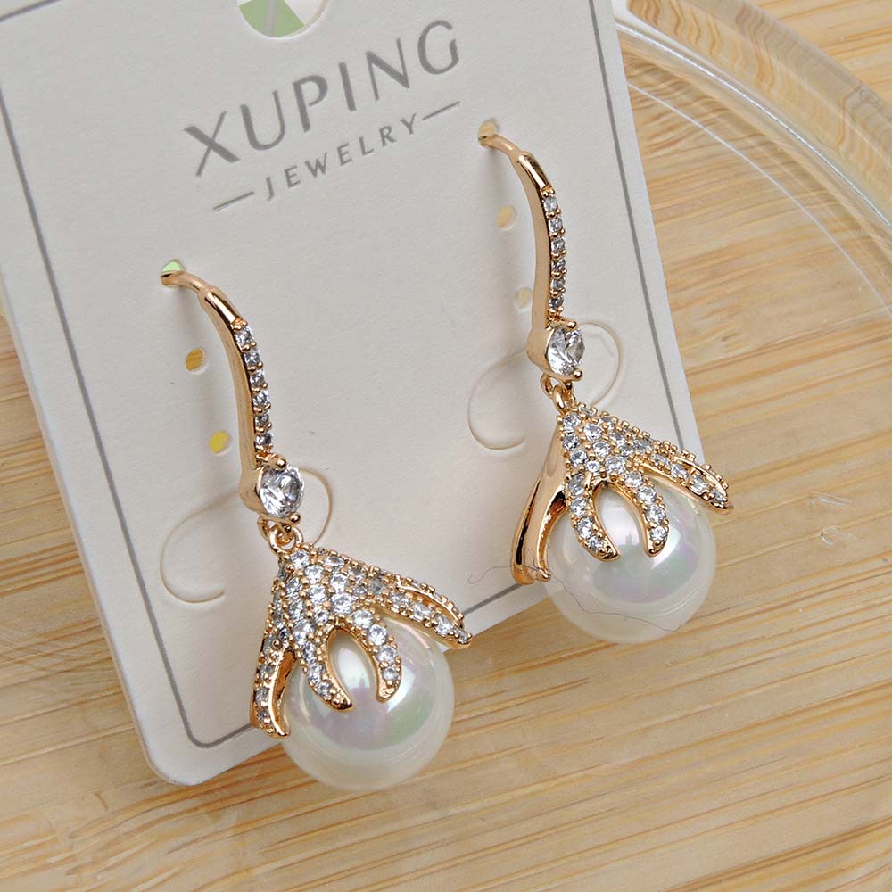 Серьги на крючках с золотым покрытием 18K 1 мкр с цирконами (фианитами)
