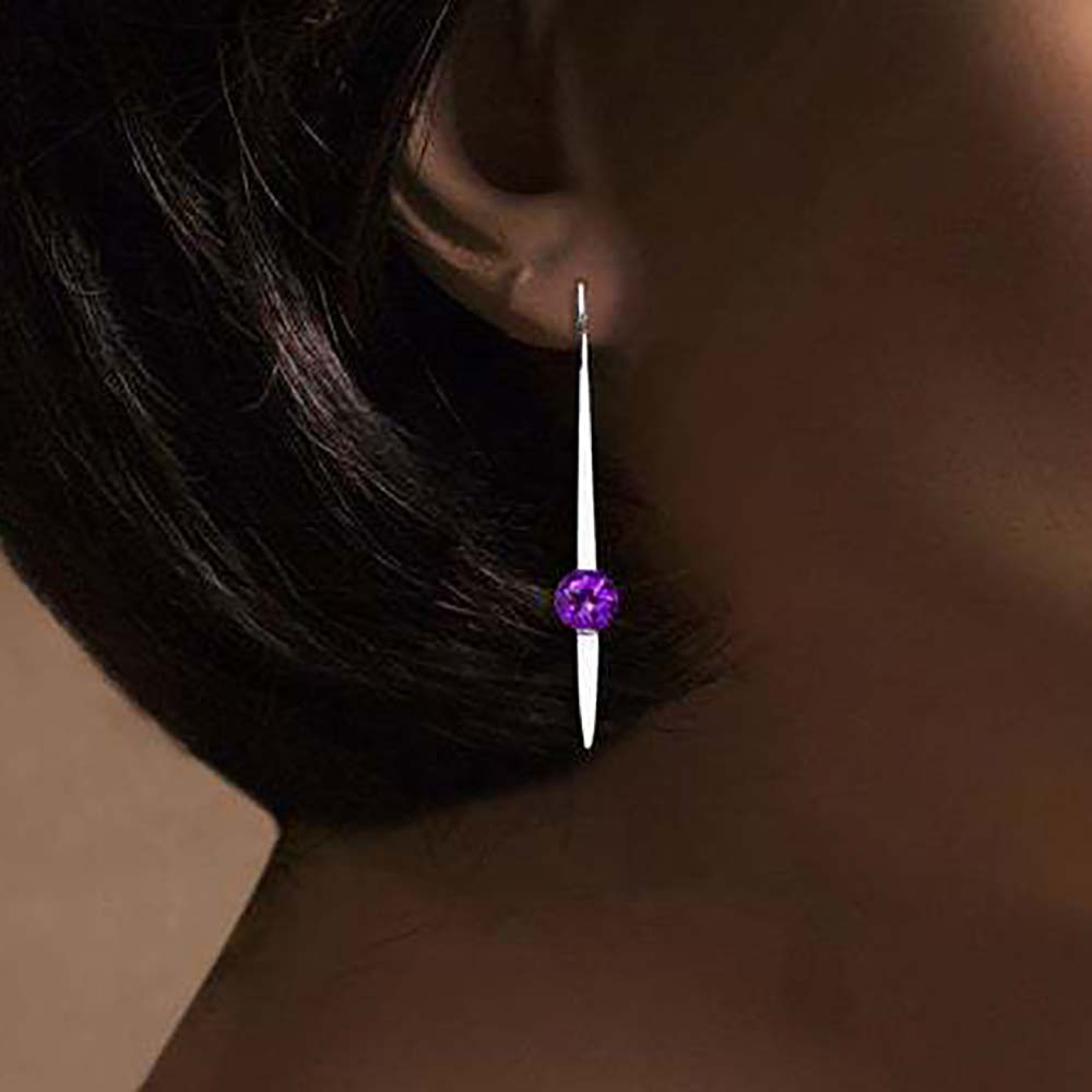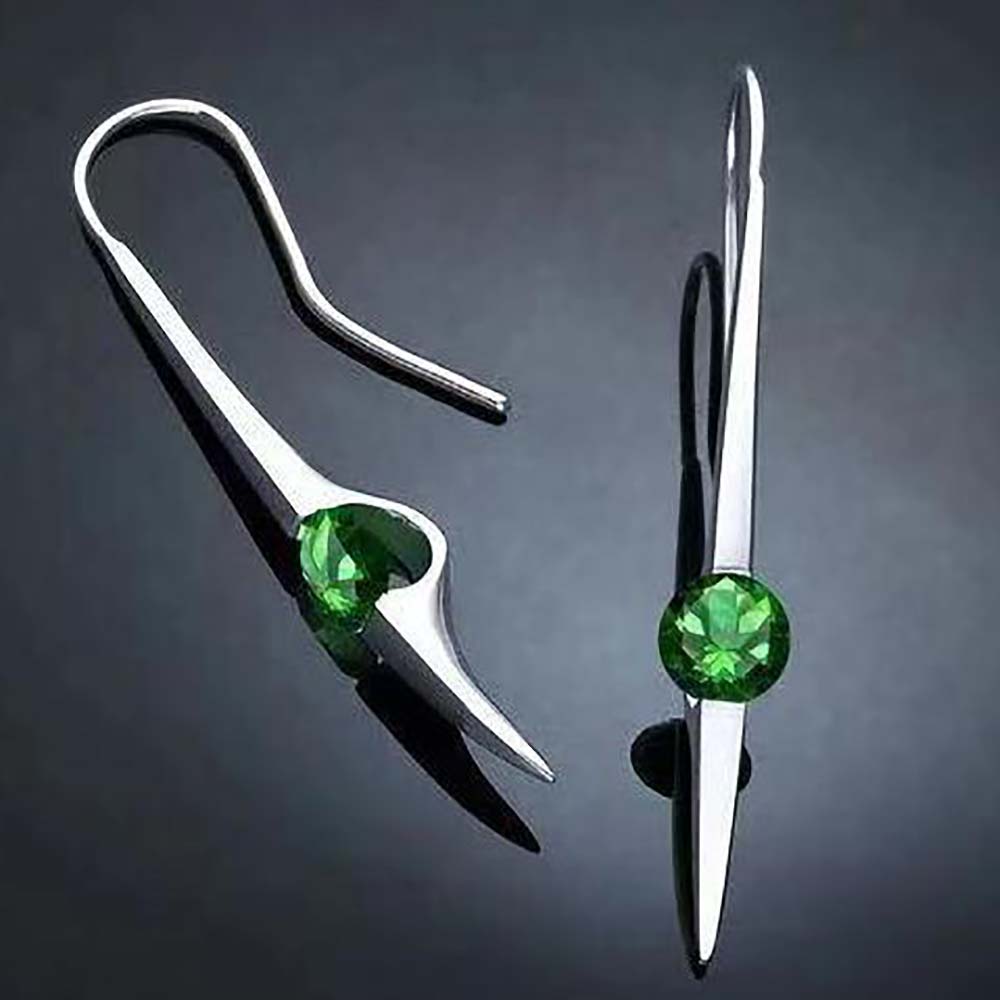 Серьги на крючках в винтажном стиле с родиевым покрытием с цирконами (фианитами)