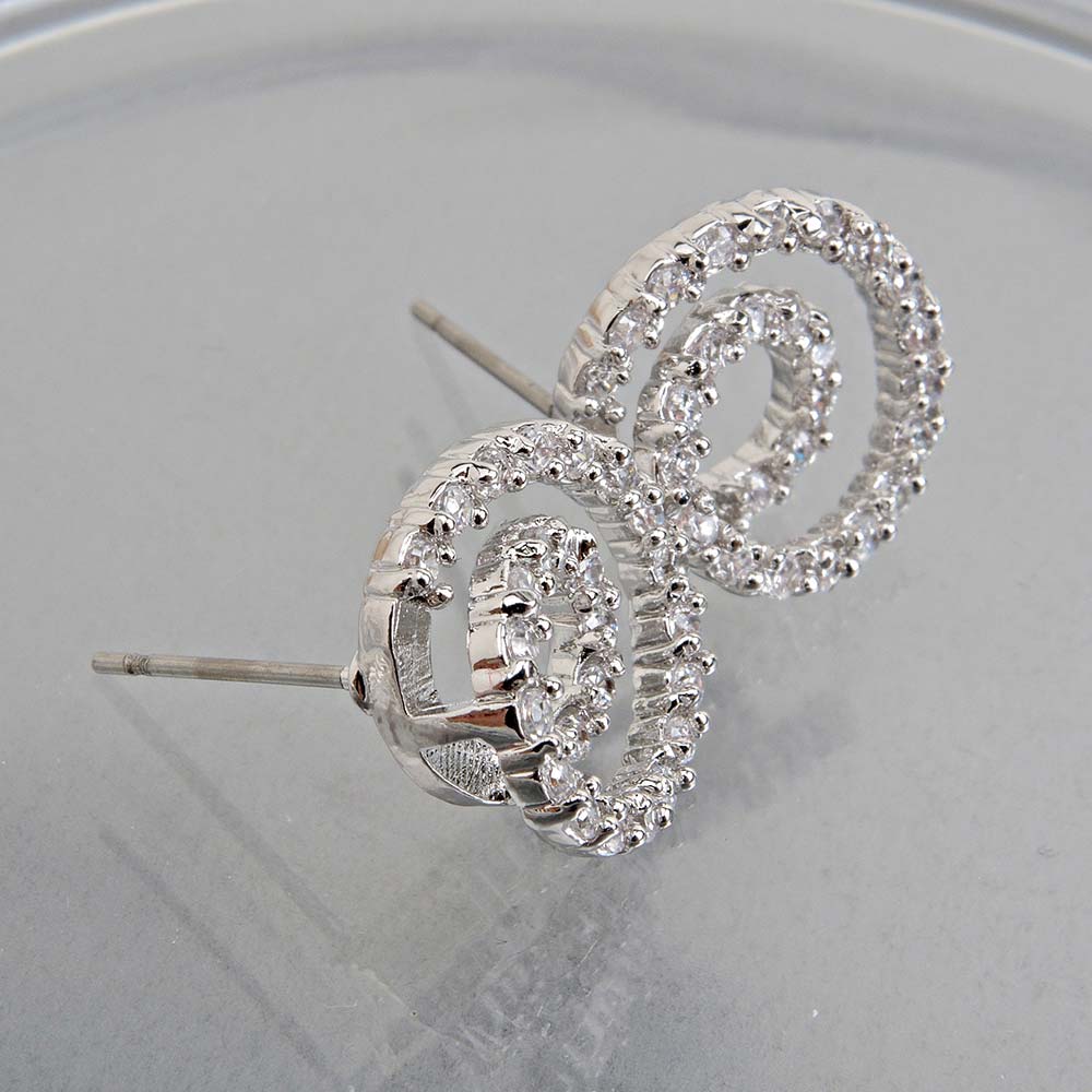 Серьги-пуссеты на гвоздиках  белые с родиевым покрытием с цирконами (фианитами)