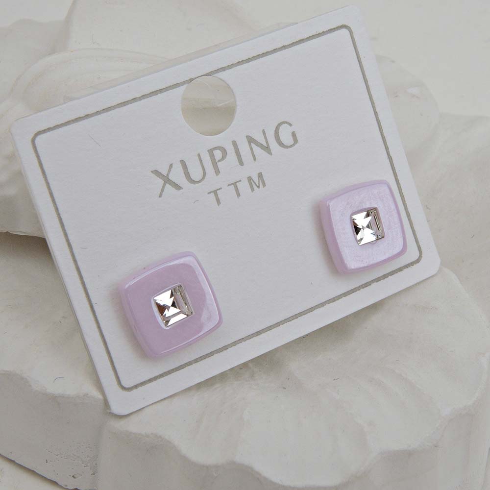 Серьги-пуссеты на гвоздиках с родиевым покрытием со вставками из керамики