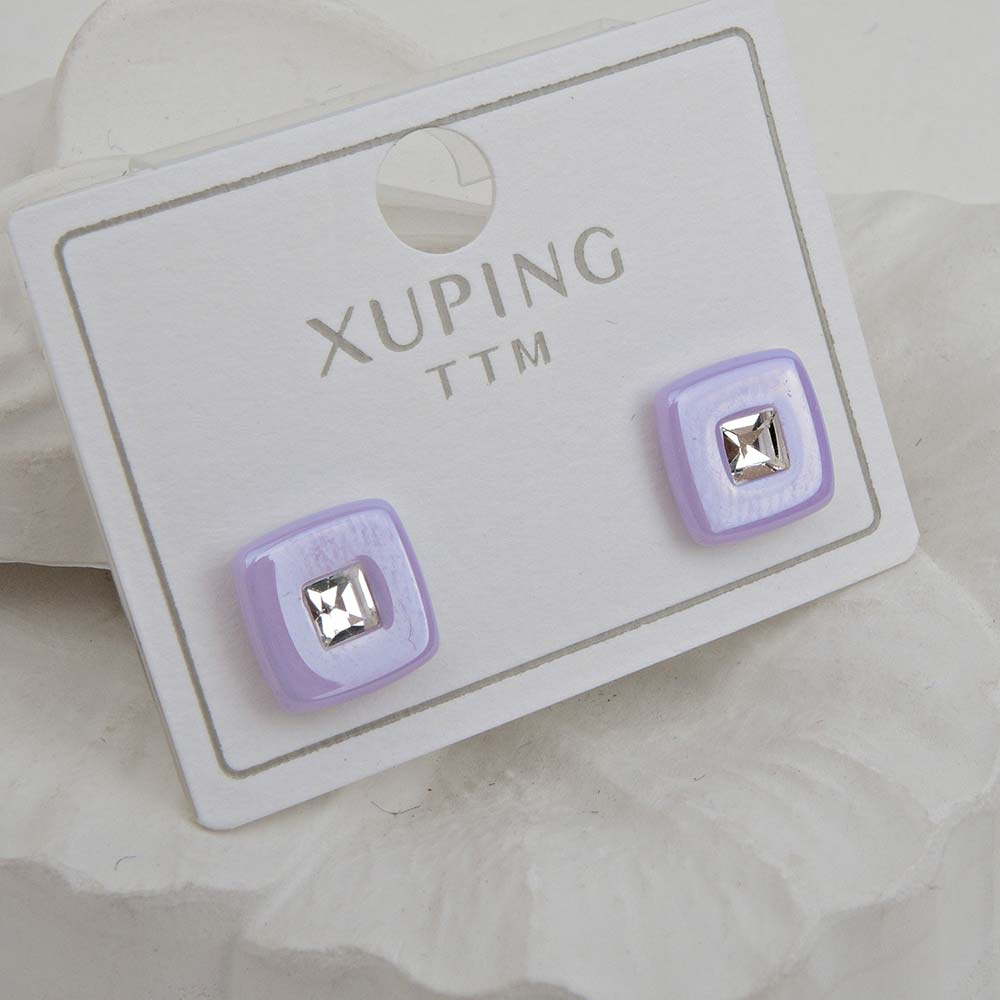 Серьги-пуссеты на гвоздиках с родиевым покрытием со вставками из керамики