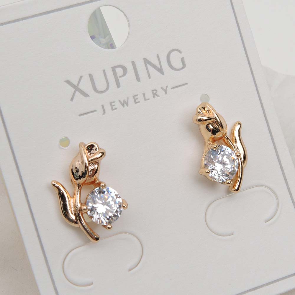 Серьги-пуссеты на гвоздиках с золотым покрытием 18K 1 мкр с цирконами (фианитами)
