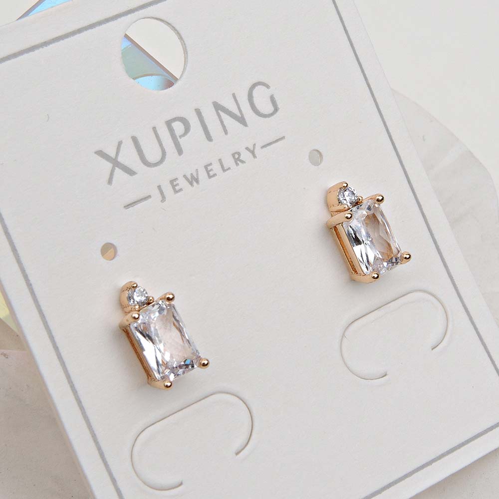 Серьги-пуссеты на гвоздиках с золотым покрытием 18K 1 мкр с цирконами (фианитами)