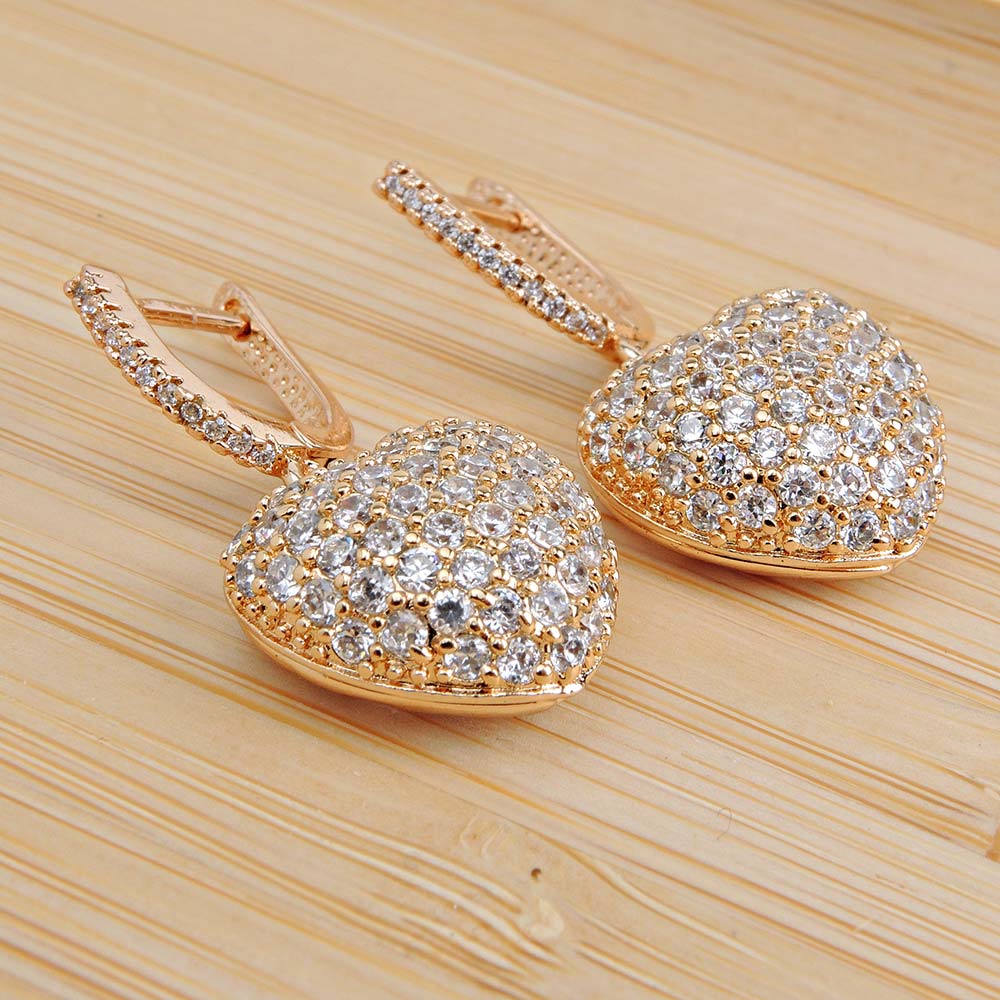 Серьги с английским замком белые с золотым покрытием 18K 1 мкр с цирконами (фианитами)