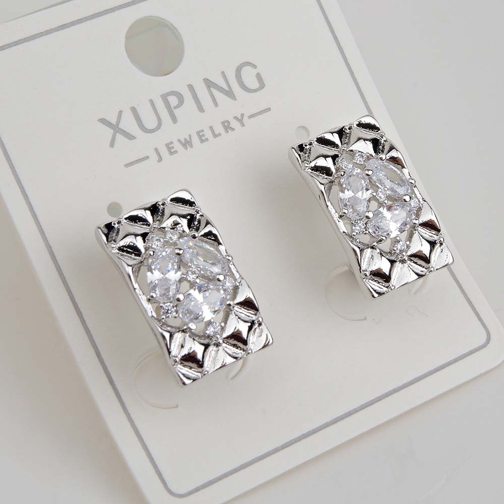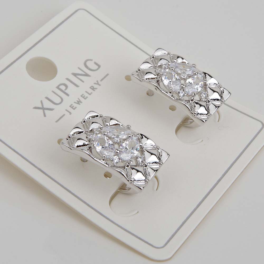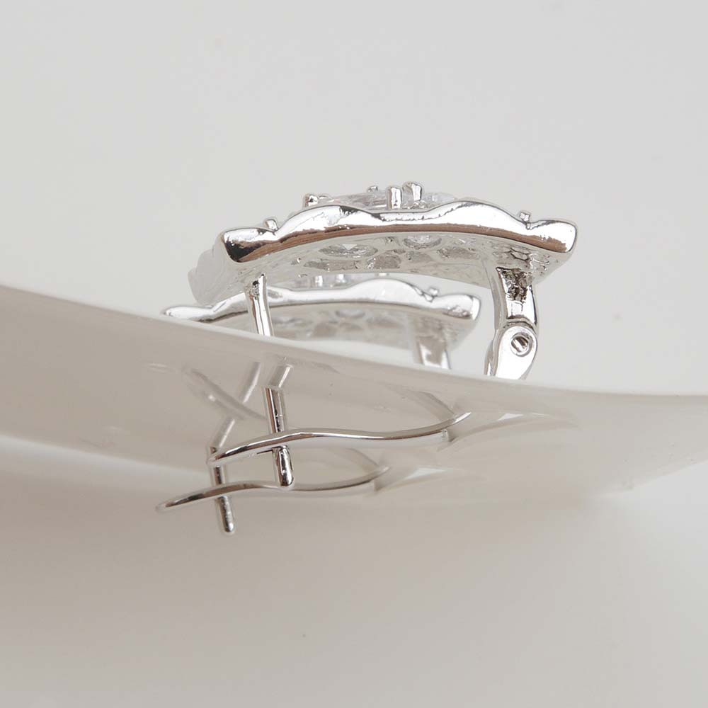 Серьги с английским замком с родиевым покрытием с цирконами (фианитами)