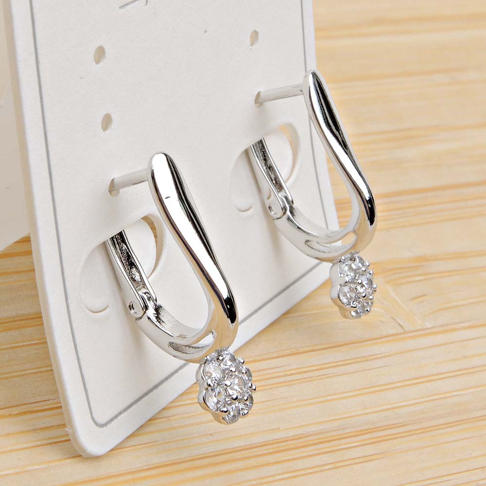 Серьги с английским замком с родиевым покрытием с цирконами (фианитами)