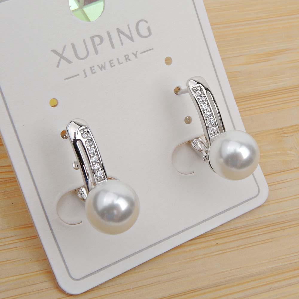Серьги с английским замком с родиевым покрытием с цирконами (фианитами)