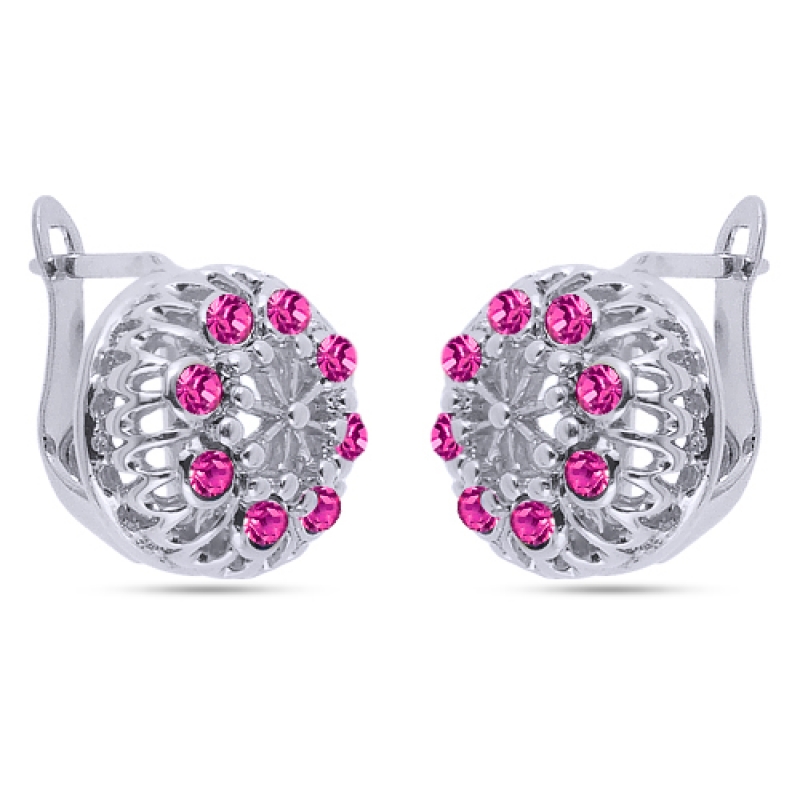 Серьги с английским замком с родиевым покрытием с цирконами (фианитами)