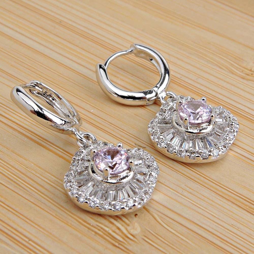 Серьги с английским замком с родиевым покрытием с цирконами (фианитами)