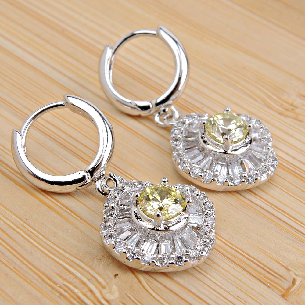 Серьги с английским замком с родиевым покрытием с цирконами (фианитами)