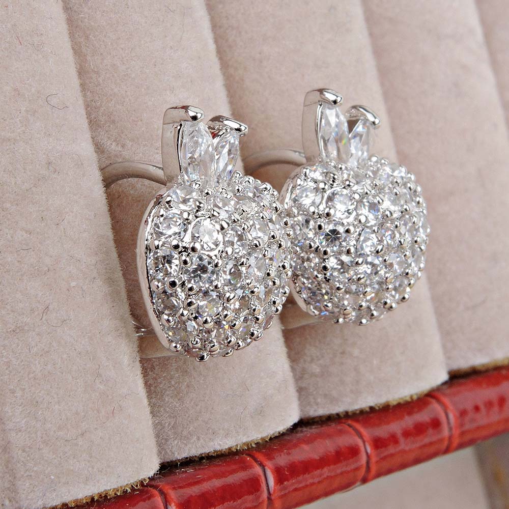 Серьги с английским замком с родиевым покрытием с цирконами (фианитами)