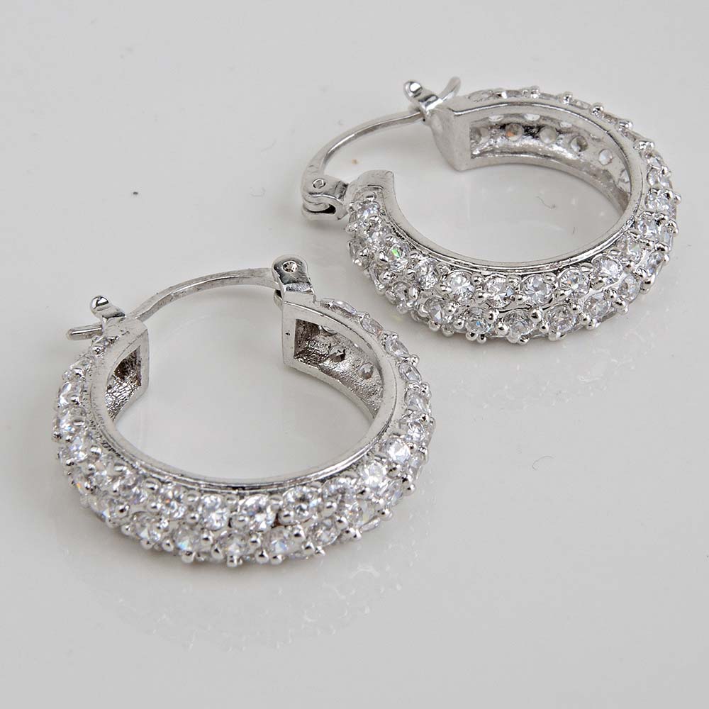 Серьги с английским замком с родиевым покрытием с цирконами (фианитами)
