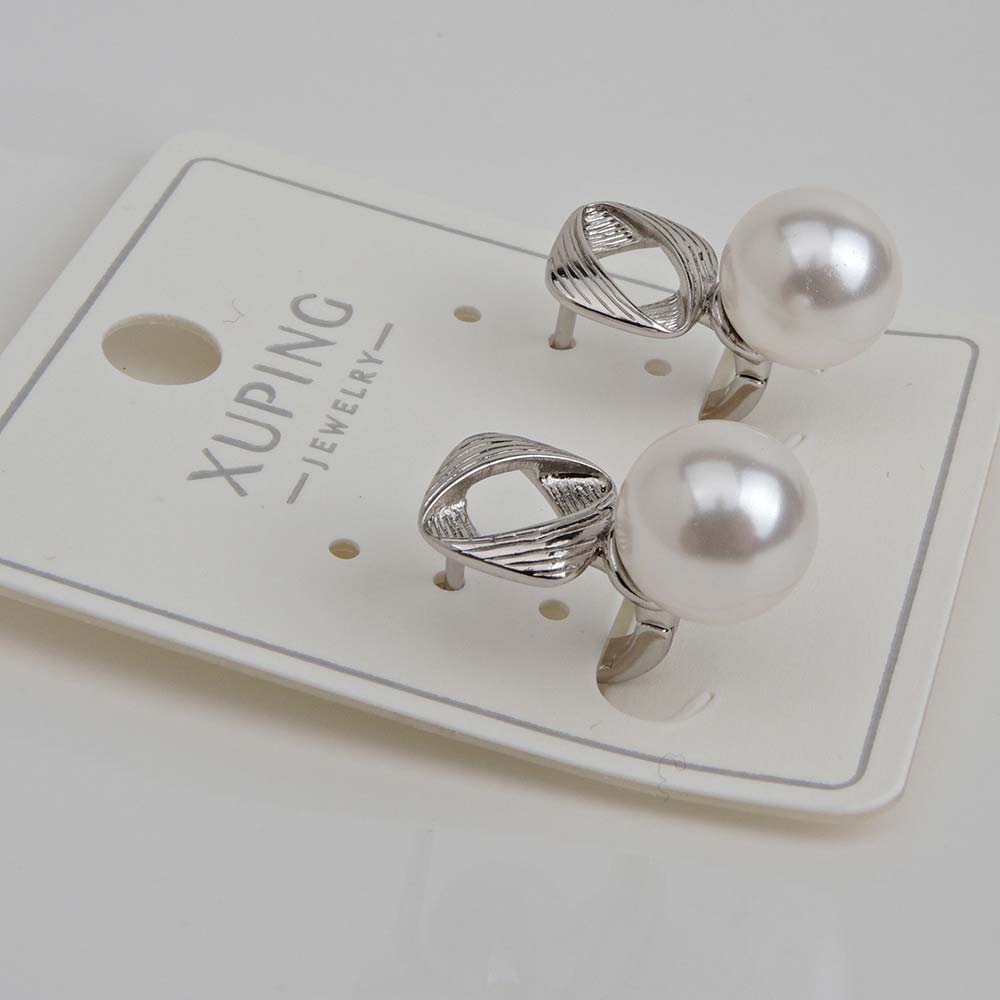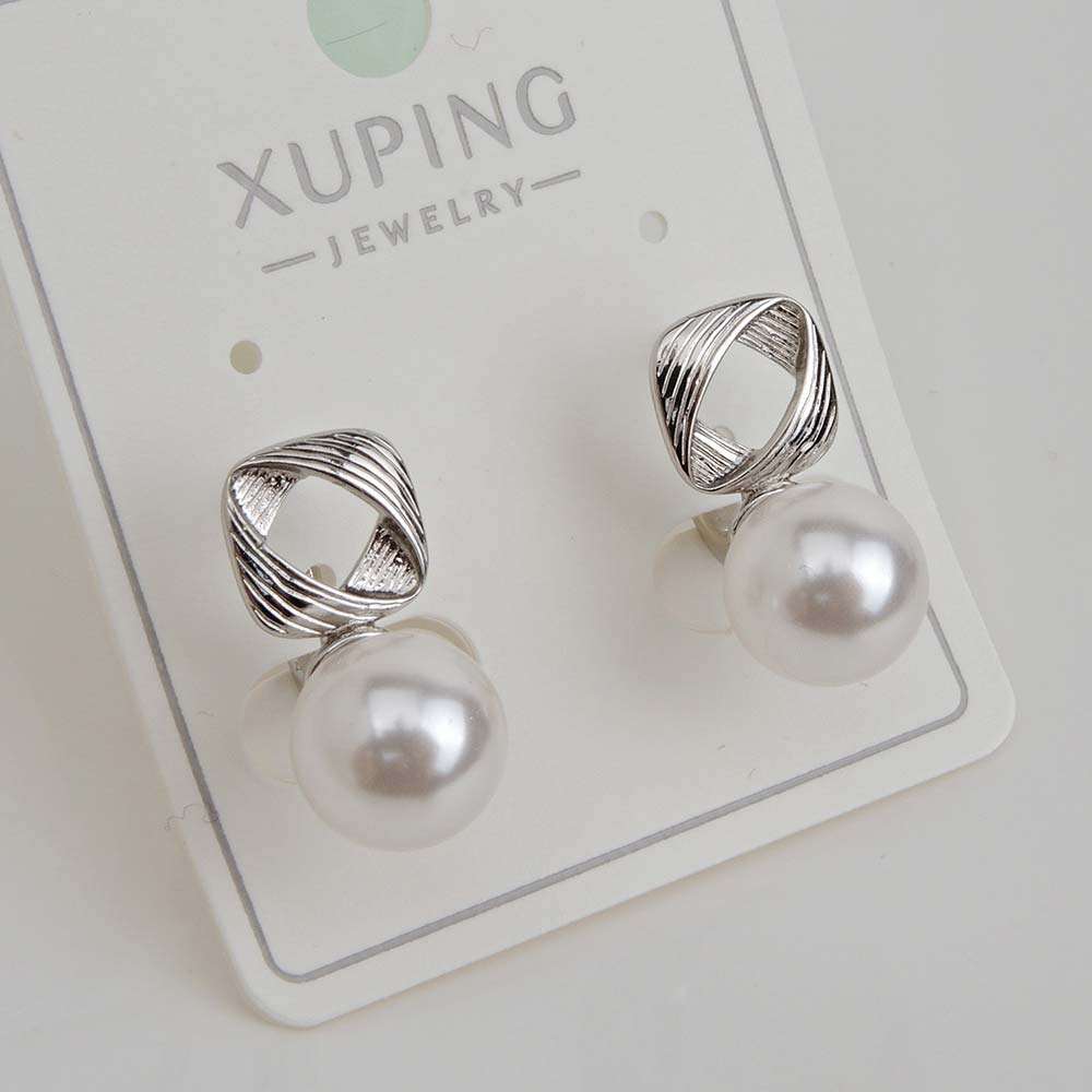 Серьги с английским замком с родиевым покрытием с искусственным жемчугом Майорка (покрытие натуральный перла