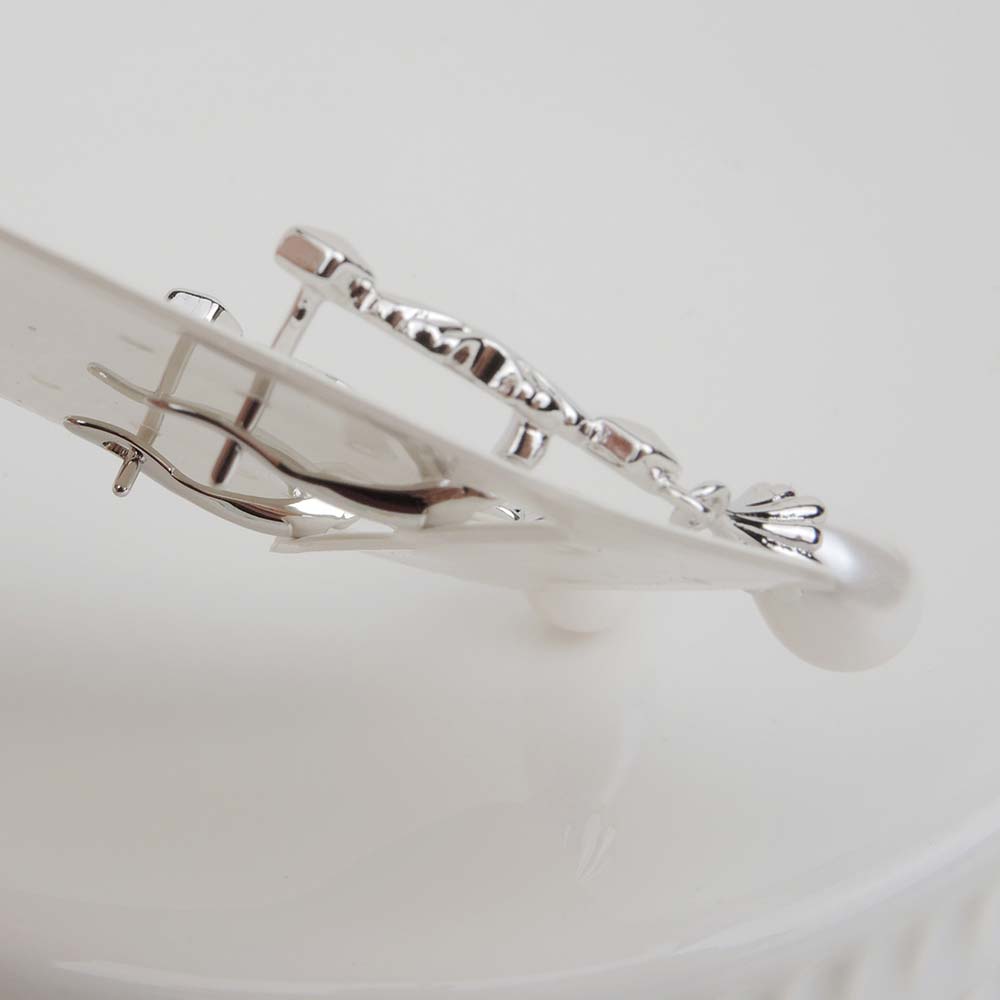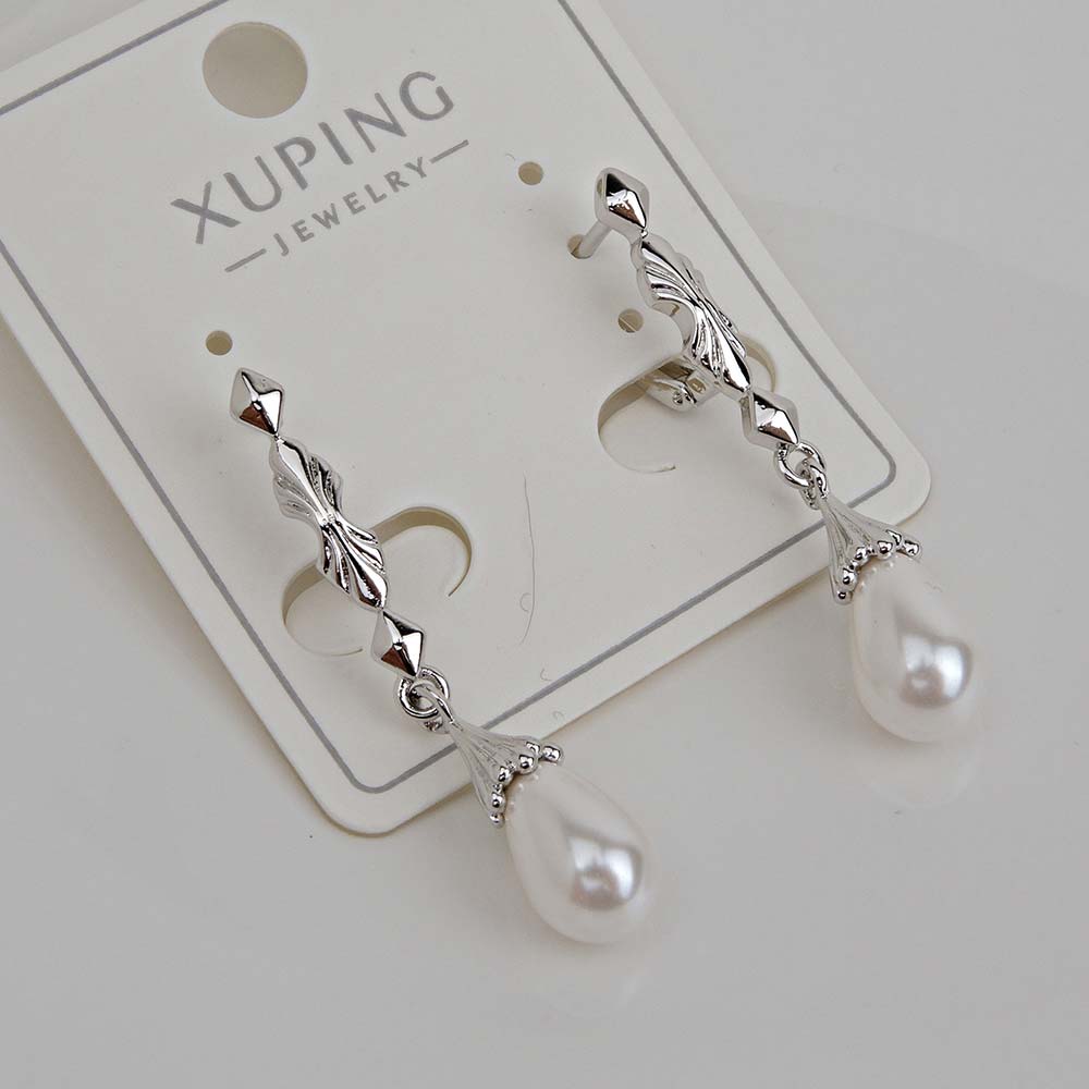 Серьги с английским замком с родиевым покрытием с искусственным жемчугом Майорка (покрытие натуральный перла