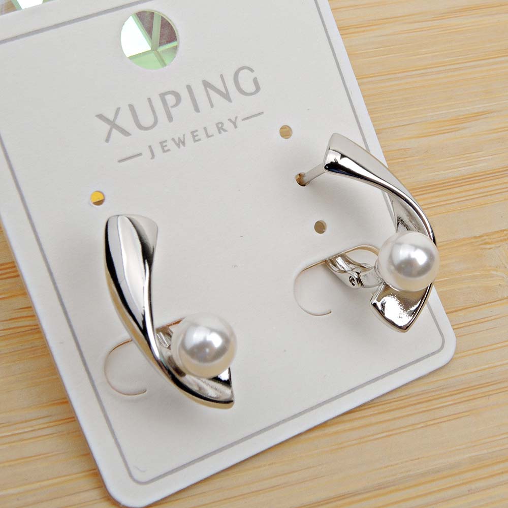 Серьги с английским замком с родиевым покрытием с искусственным жемчугом Майорка (покрытие натуральный перла