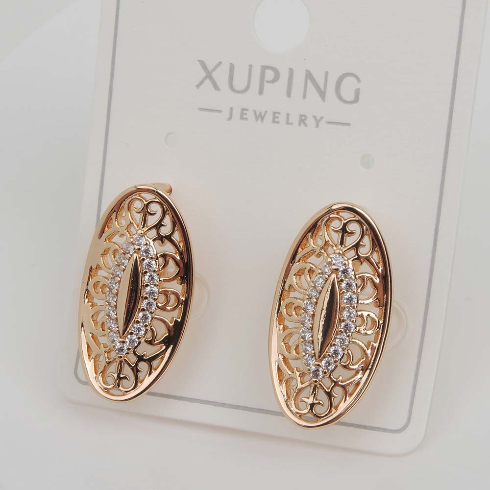 Серьги с английским замком с золотым покрытием 18K 1 мкр с цирконами (фианитами)