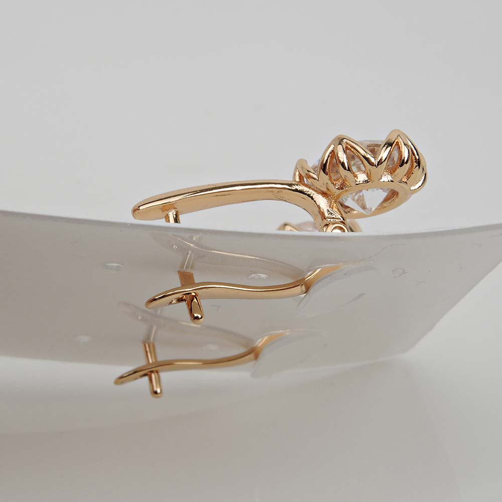 Серьги с английским замком с золотым покрытием 18K 1 мкр с цирконами (фианитами)