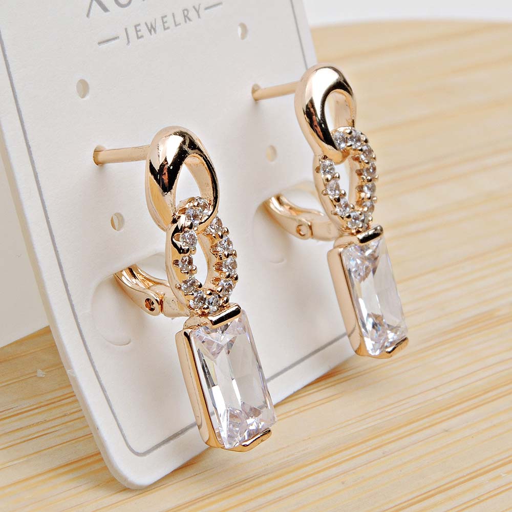Серьги с английским замком с золотым покрытием 18K 1 мкр с цирконами (фианитами)