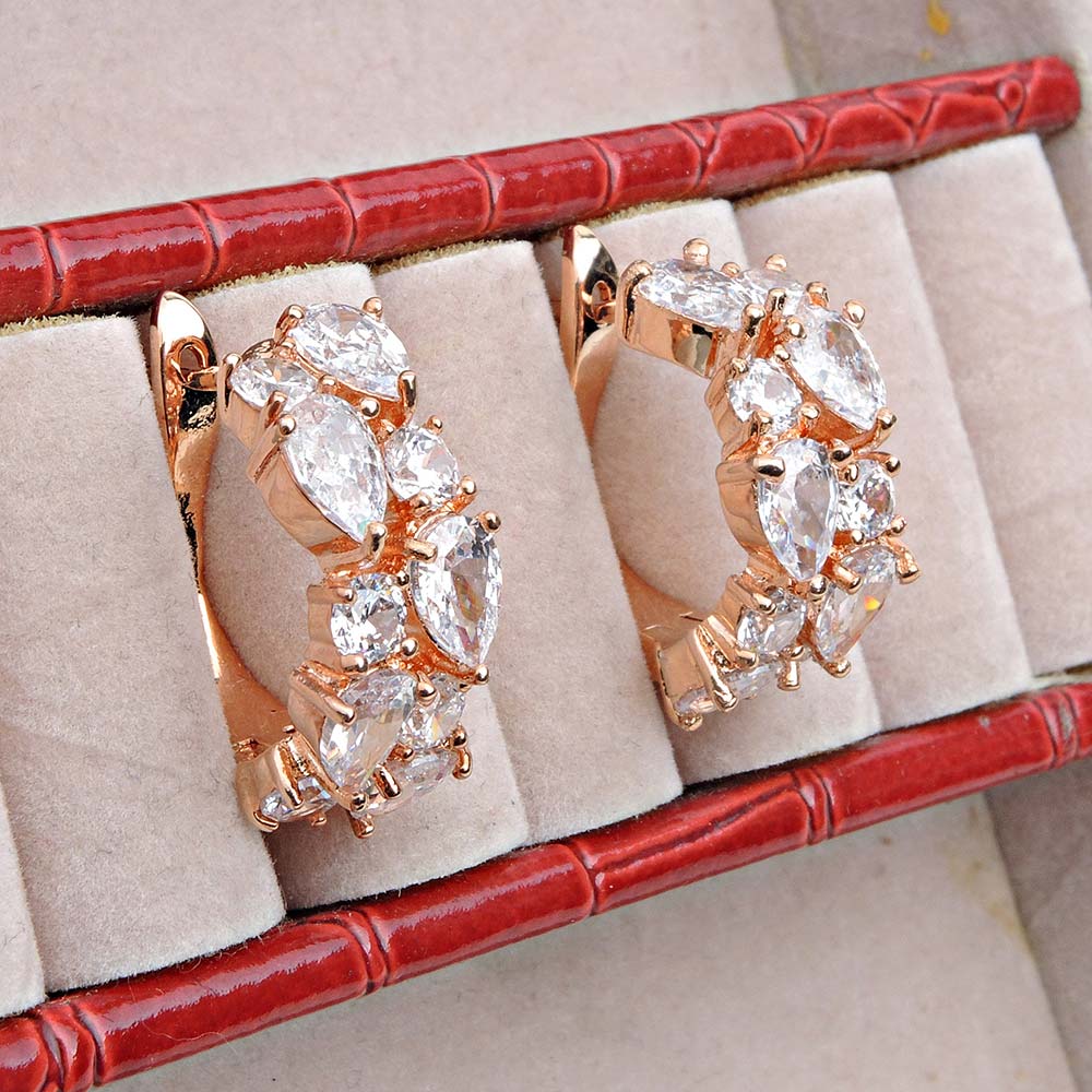 Серьги с английским замком с золотым покрытием 18K 1 мкр с цирконами (фианитами)