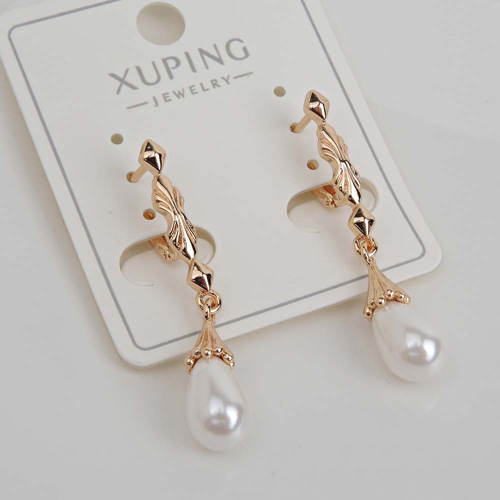Серьги с английским замком с золотым покрытием 18K 1 мкр с искусственным жемчугом Майорка (покрытие натуральный перла