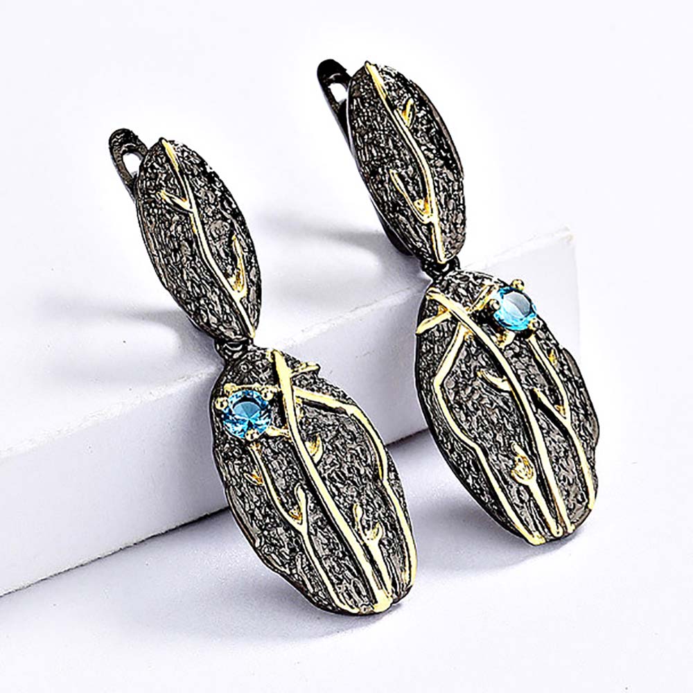 Серьги с английским замком в винтажном стиле с золотым покрытием 14K 1 мкр с цирконами (фианитами)