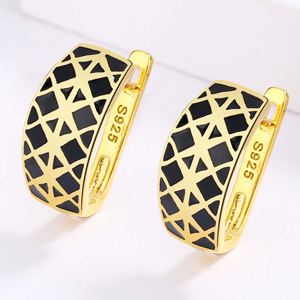 Серьги с английским замком в винтажном стиле с золотым покрытием 18K 1 мкр с эмалью