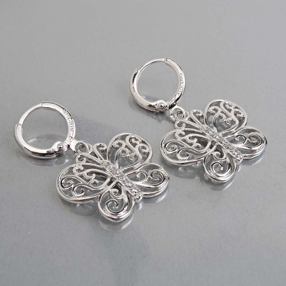 серьги(вставки:цирконы белые,покрытие:родирование), размер серьги-3х2см